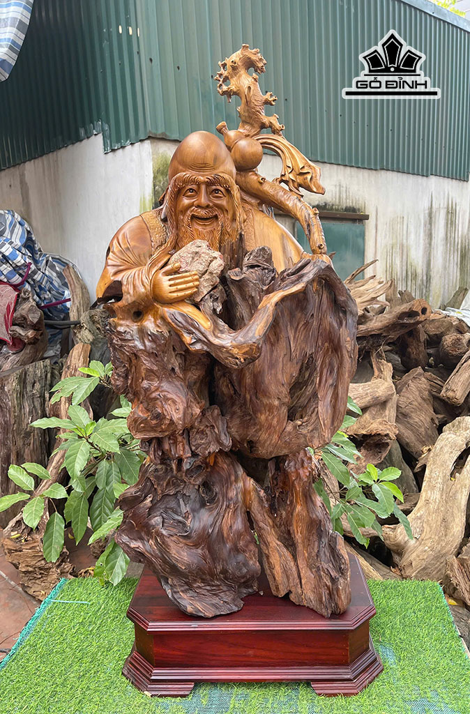 Tượng Ông Thọ Gỗ Bách Xanh Cao Cả Kỷ 125 - Riêng Kỷ Cao 15 Ngang 50 Sâu 45 (cm)