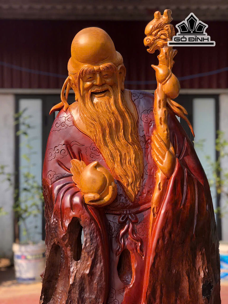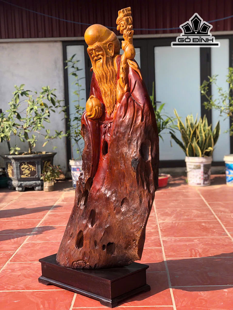 Tượng Ông Thọ Gỗ Dổi Cao 148 Ngang 68 Sâu 29 (cm)