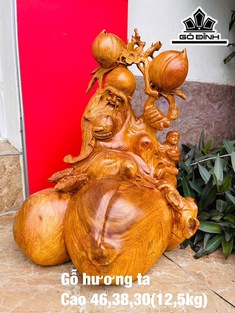 Tượng Ông Thọ Gỗ Hương Cao 46 Ngang 38 Sâu 30 (cm)