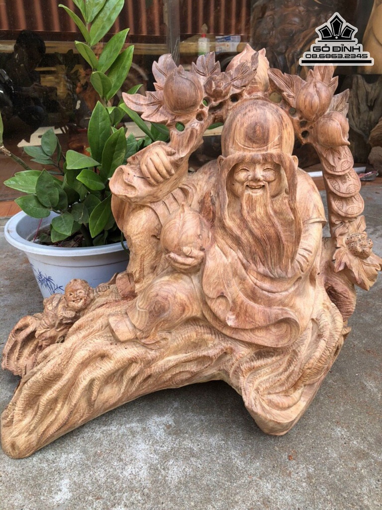 Tượng Ông Thọ Gỗ Hương Cao 48 Ngang 55 Sâu 23 (cm)