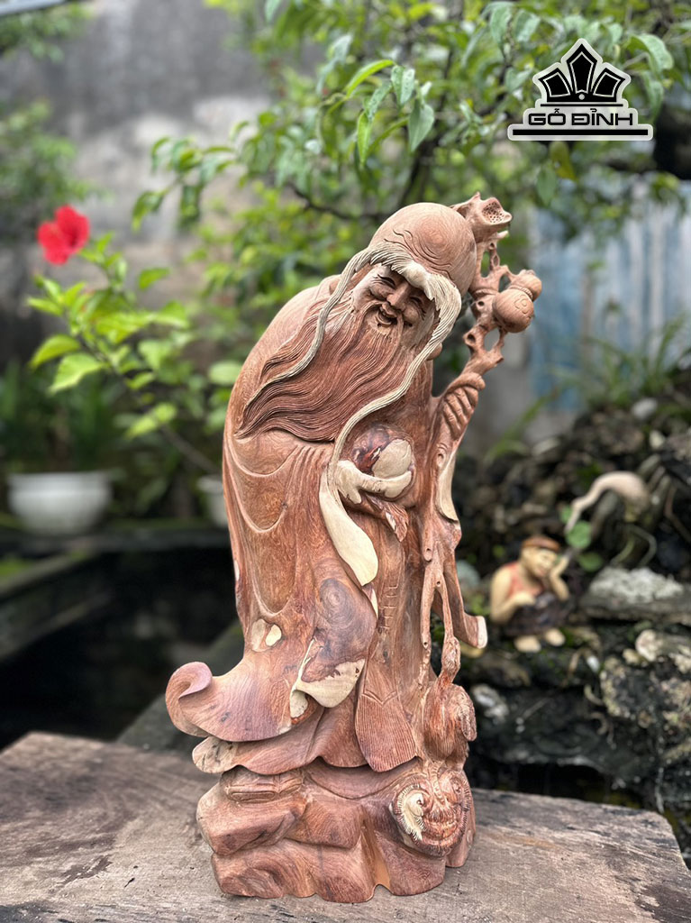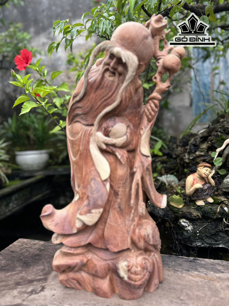 Tượng Ông Thọ Gỗ Hương Cao 58 Ngang 30 Sâu 20 (cm)