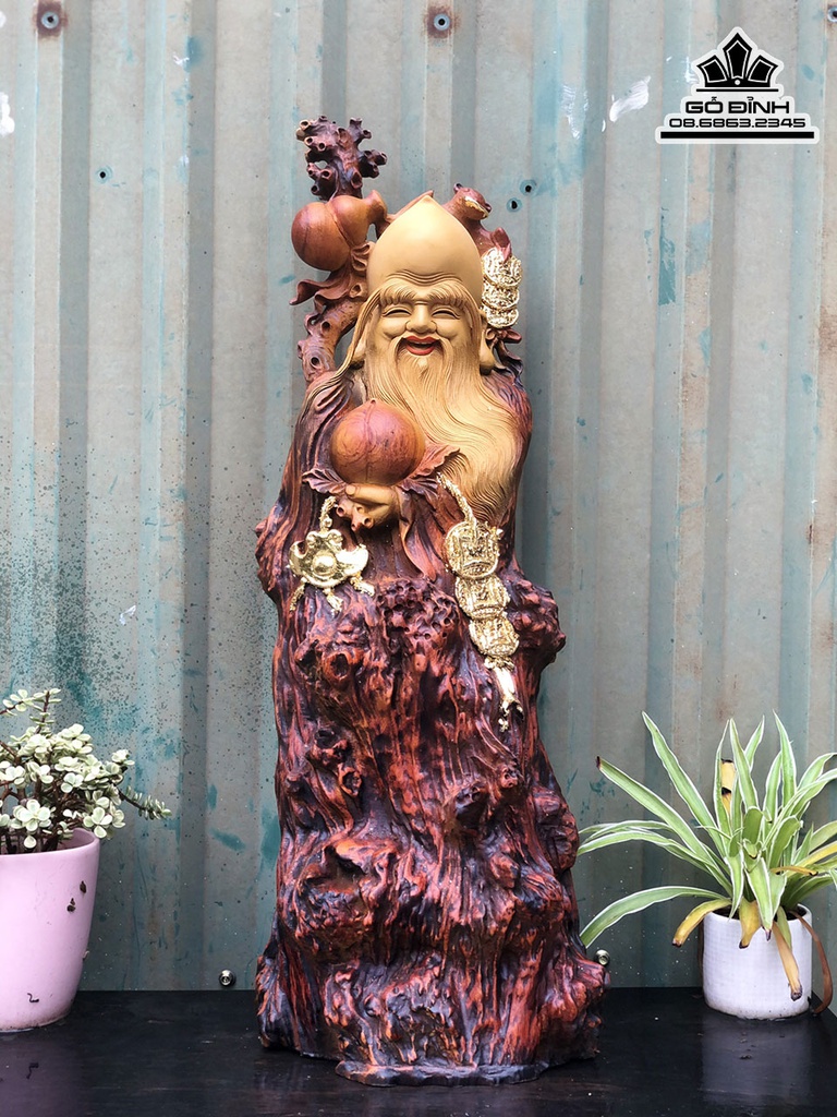 Tượng Ông Thọ Gỗ Hương Cao 65 Ngang 25 Sâu 15 (cm)
