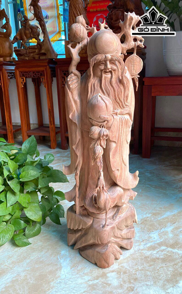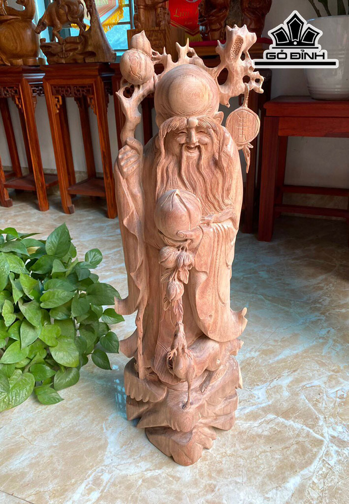 Tượng Ông Thọ Gỗ Hương Cao 72 Ngang 23 Sâu 23 (cm)