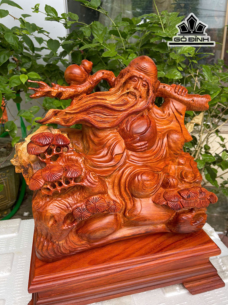 Tượng Ông Thọ Gỗ Hương Cao Cả Kỷ 43 - Riêng Tượng Cao 10 Ngang 37 Sâu 18 (cm)
