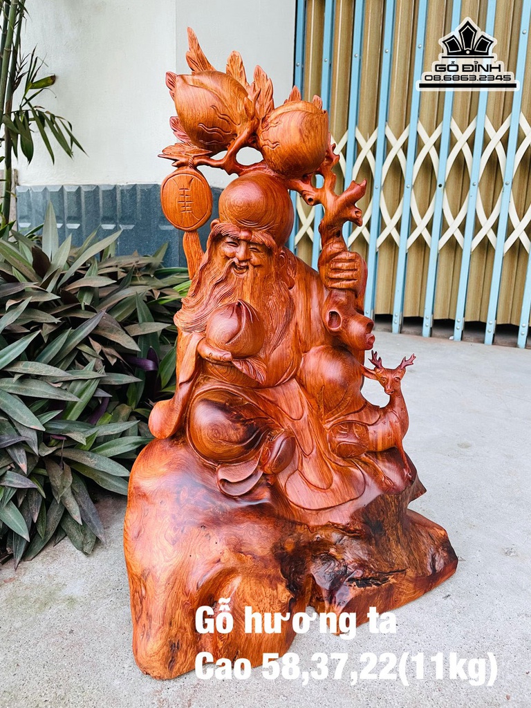 Tượng Ông Thọ Gỗ Hương Việt Cao 58 Ngang 37 Sâu 22 (cm)