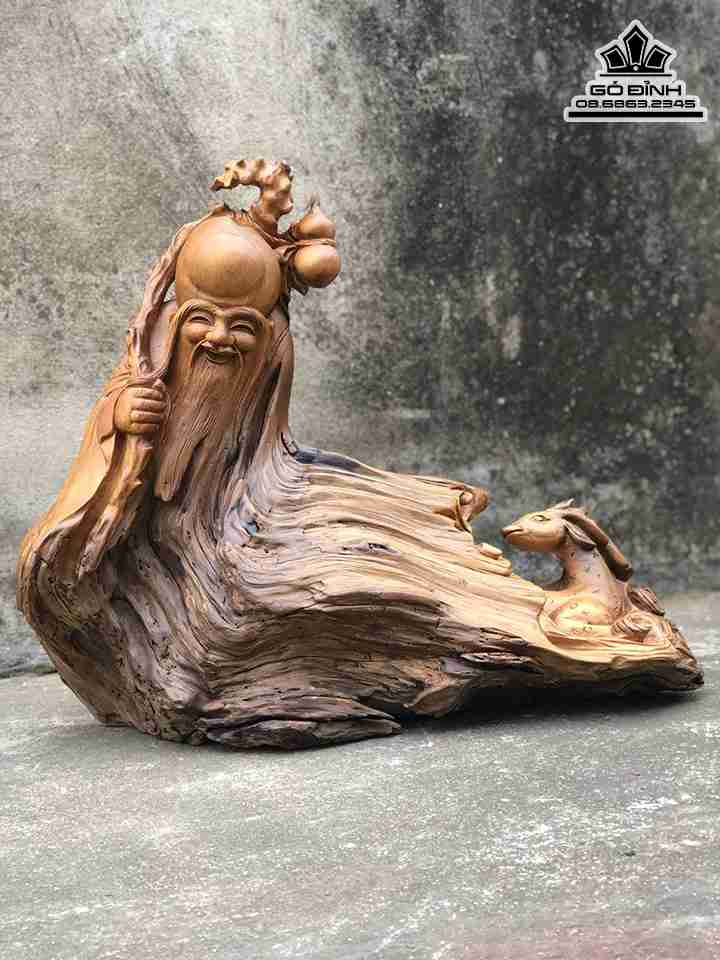 Tượng Ông Thọ Gỗ Lũa Bách Xanh Cao 45 Rộng 52 Dày 15 (cm)
