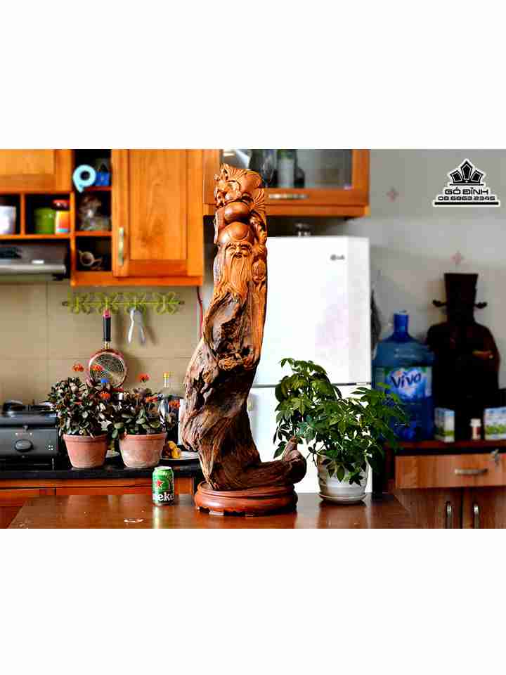 Tượng Ông Thọ Gỗ Lũa Bách Xanh Cao 100 Ngang 41 Dày 31 (cm)