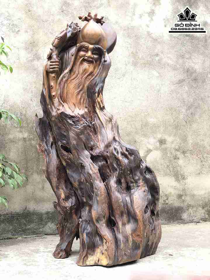 Tượng Ông Thọ Gỗ Lũa Bách Xanh Cao 99 Rộng 41 Dày 28 (cm)