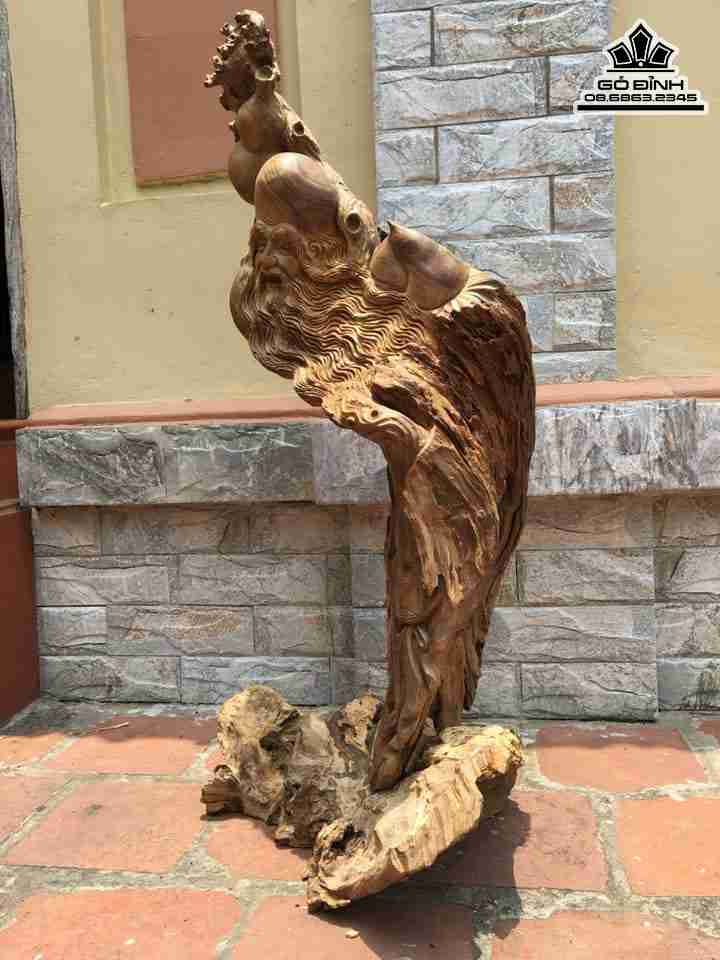 Tượng Ông Thọ gỗ lũa bách xanh cao 110 rộng 43 dày 20 (cm)