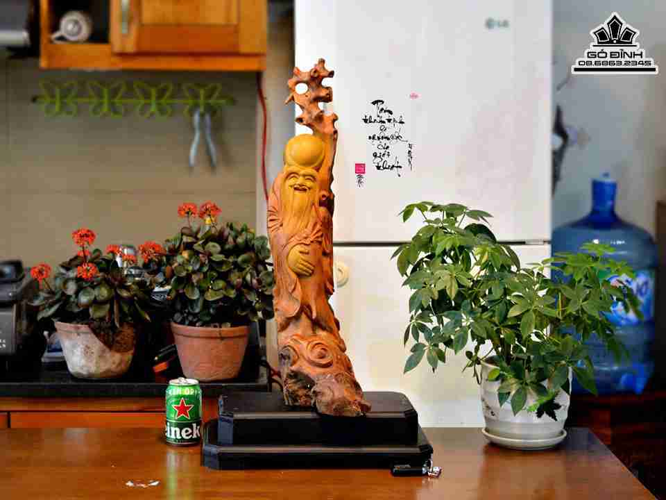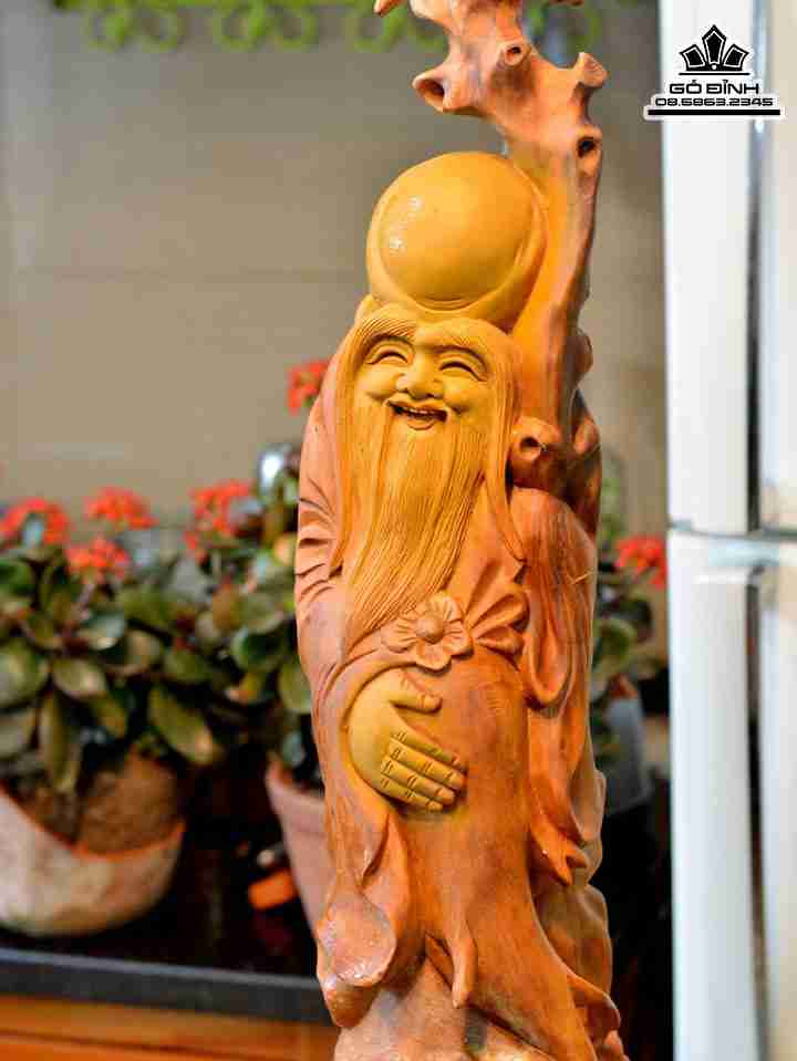 Tượng Ông Thọ Gỗ Ngọc Am Hà Giang Cao 72 Ngang 17 Sâu 25 (cm)