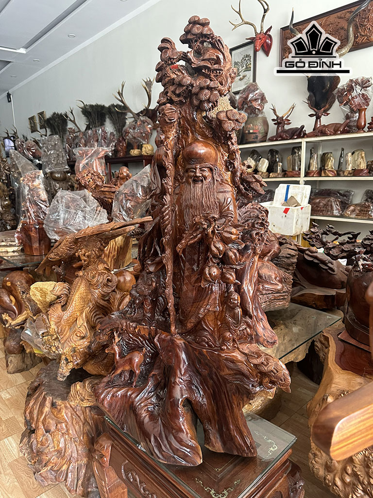 Tượng Ông Thọ Gỗ Nu Hương Cao 125 Ngang 70 Sâu 40 (cm)