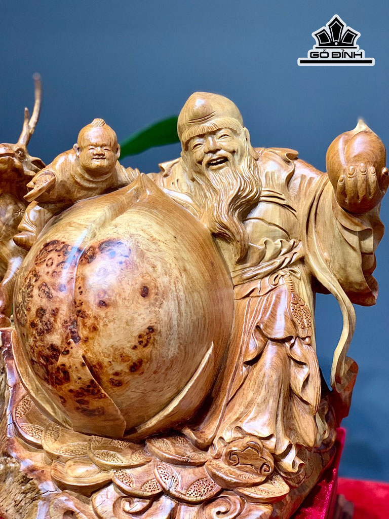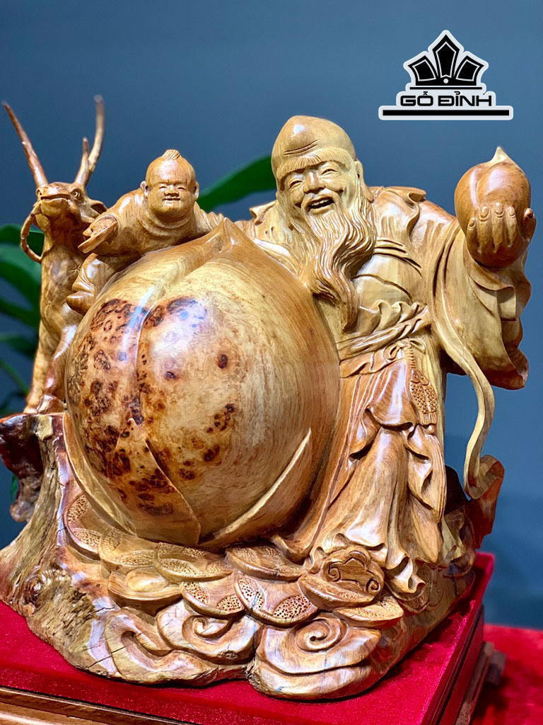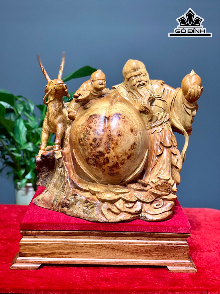 Tượng Ông Thọ Gỗ Nu Hương Cao 37 Ngang 30 Sâu 26 (cm)