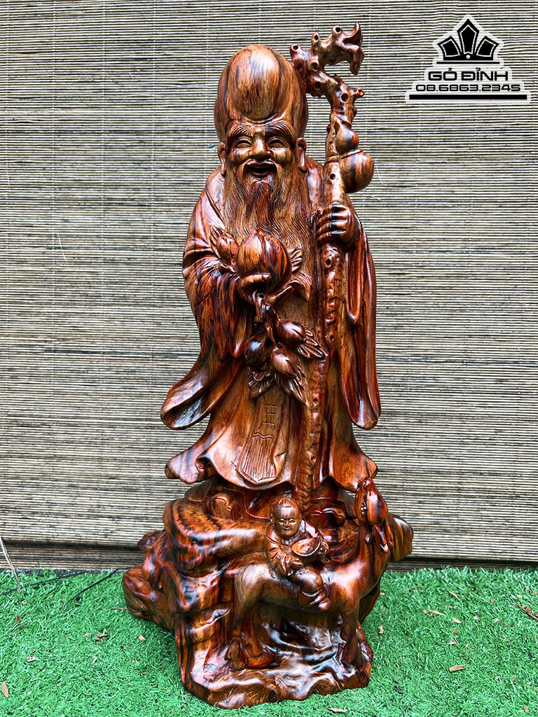 Tượng Ông Thọ Gỗ Sưa Cao 43 Ngang 23 Sâu 14 (cm)