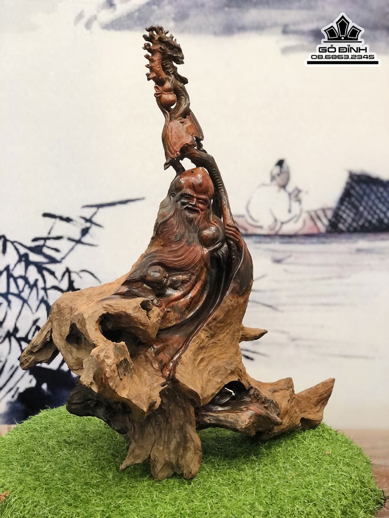 Tượng Ông Thọ Gỗ Trắc Cao 69 Ngang 60 Sâu 33 (cm)