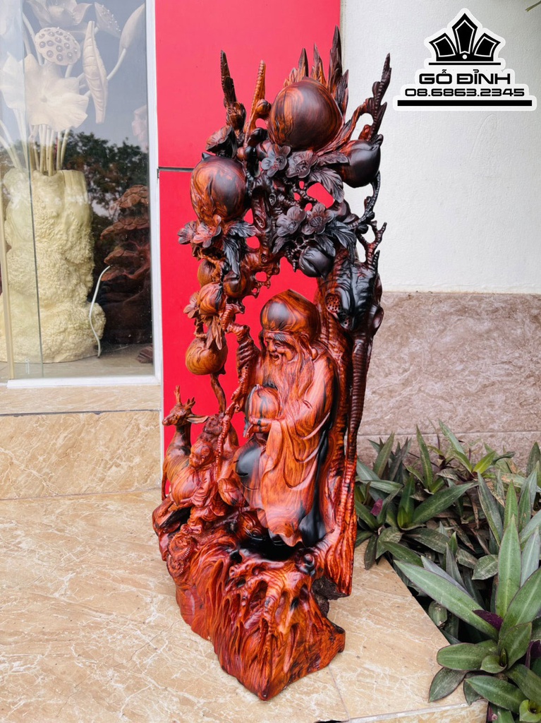 Tượng Ông Thọ Gỗ Trắc Liền Khối Cao 70 Ngang 33 Sâu 19 (cm)