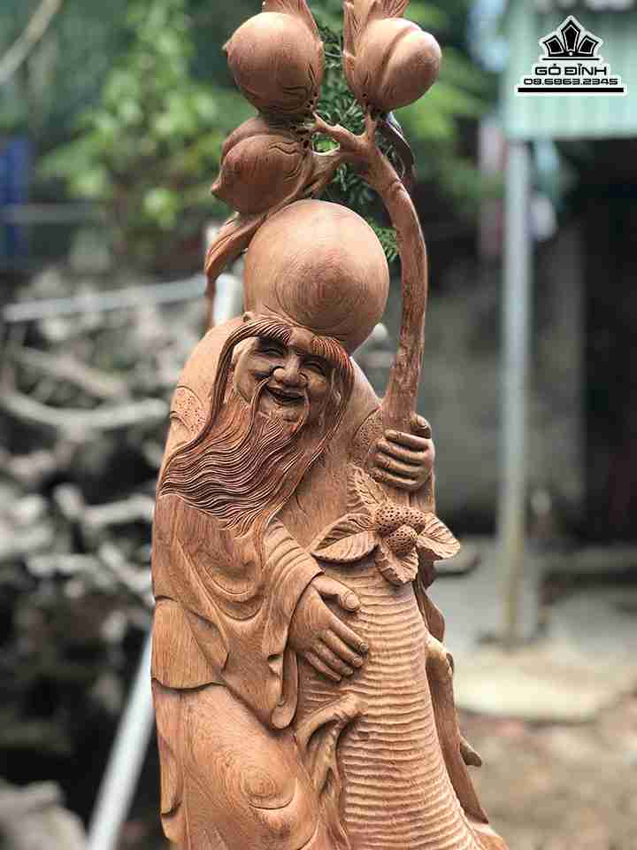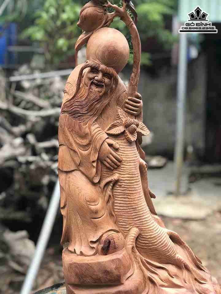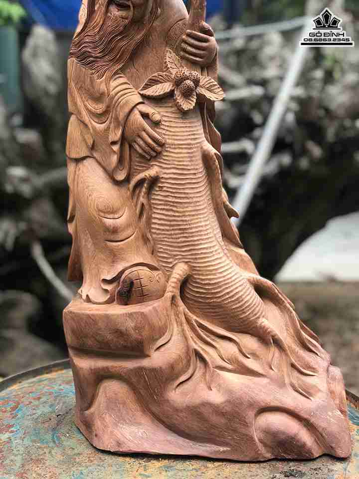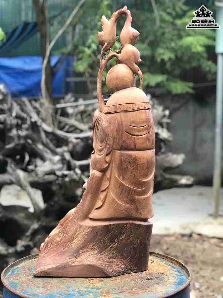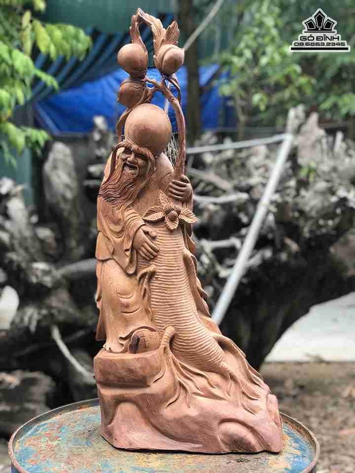 Tượng Ông Thọ Ôm Nhân Sâm Gỗ Hương Cao 70 Ngang 27 Dày 18 (cm)