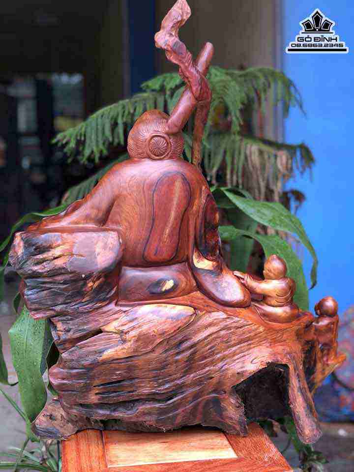 Tượng Ông Thọ Và Đàn Cháu Gỗ Hương Cao 74 Ngang 55 Sâu 40 (cm)