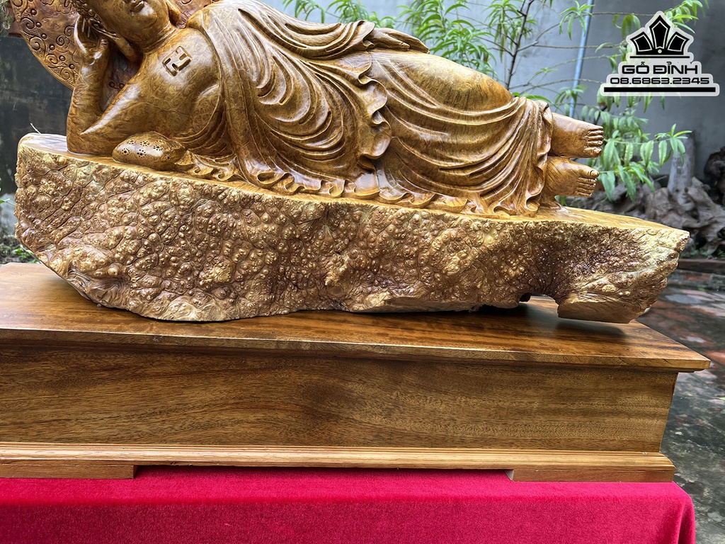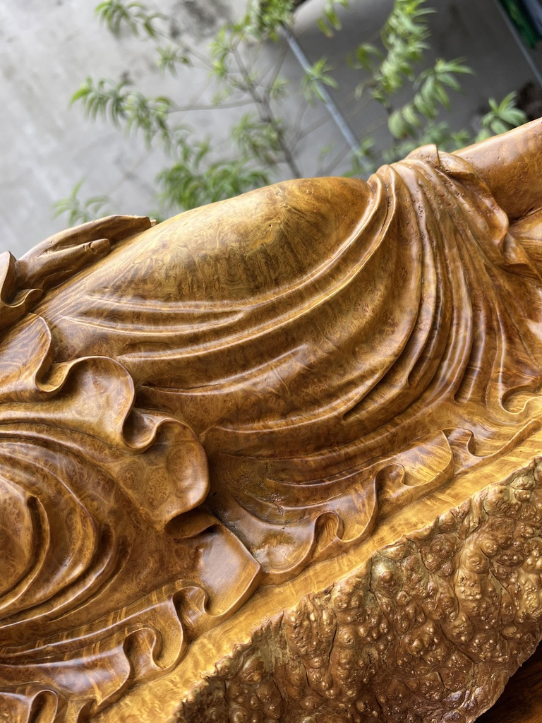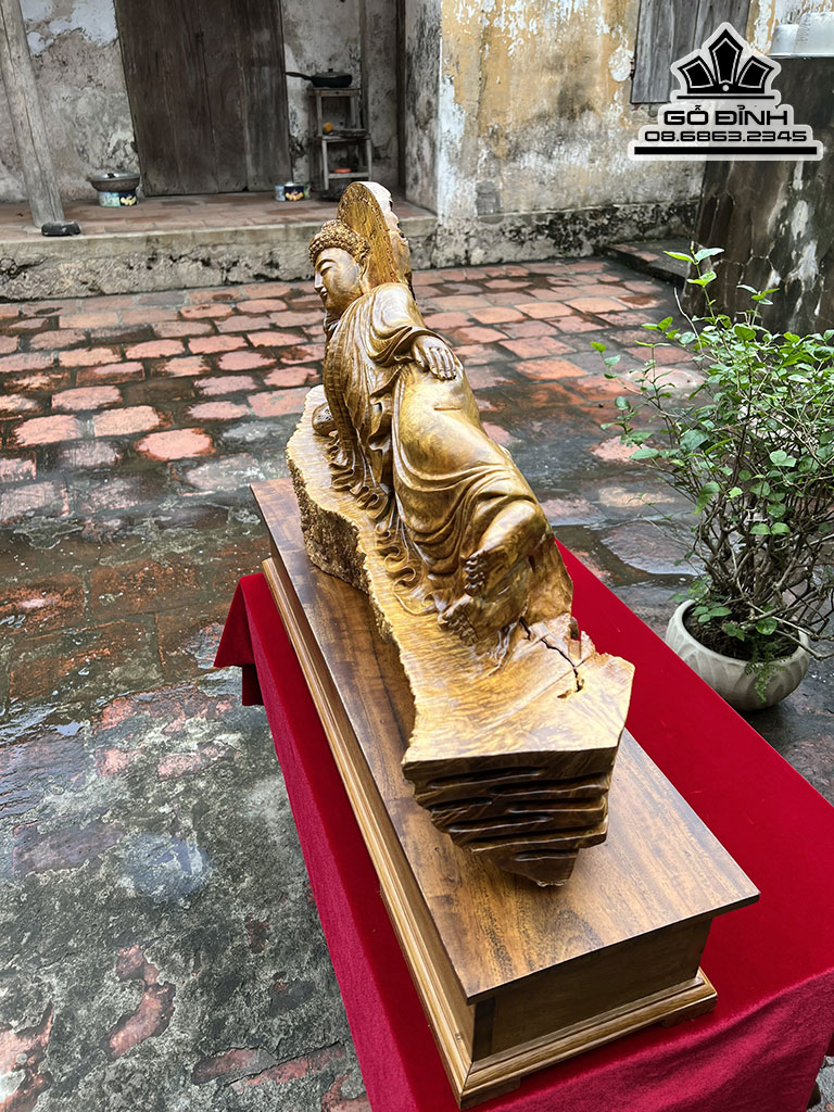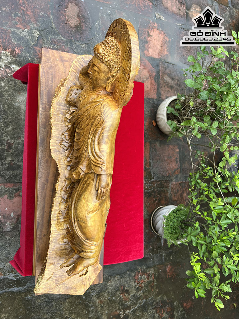 Tượng Phật A Di Đà Gỗ Nu Kháo Nguyên Khối Cao 39 Ngang 75 Sâu 21 Cả Kỷ 54 (cm)