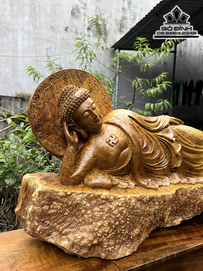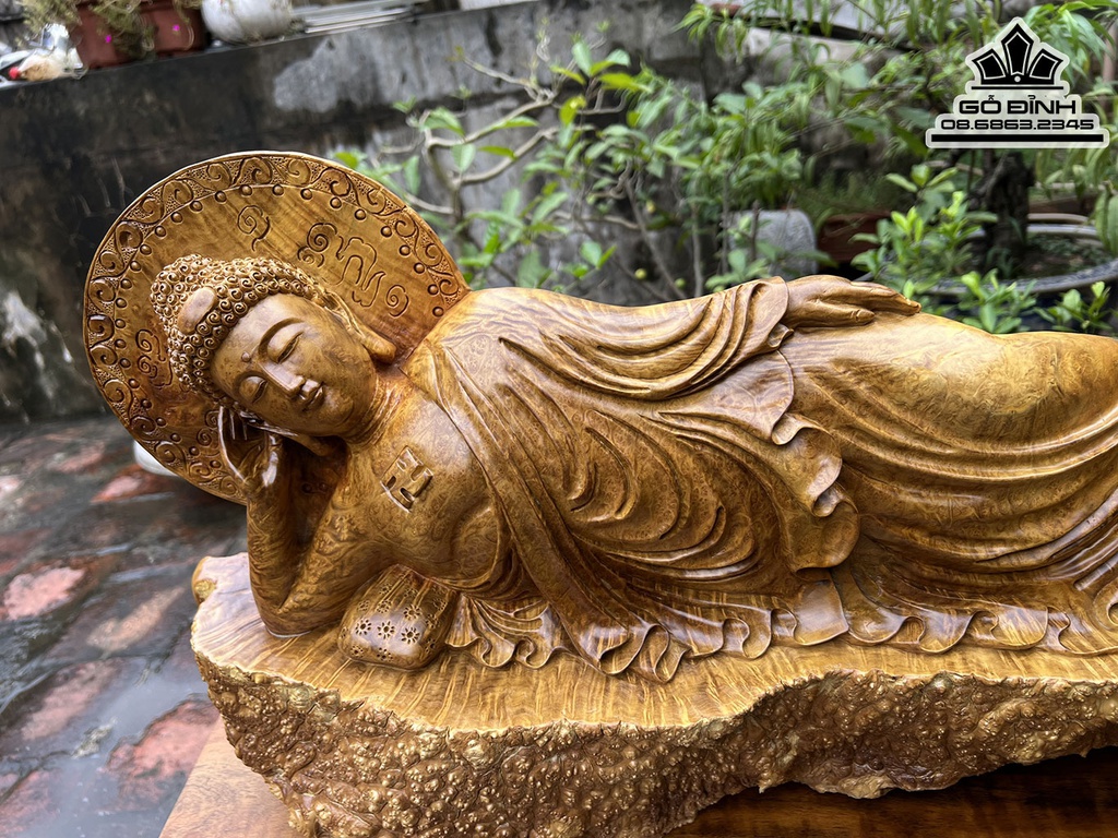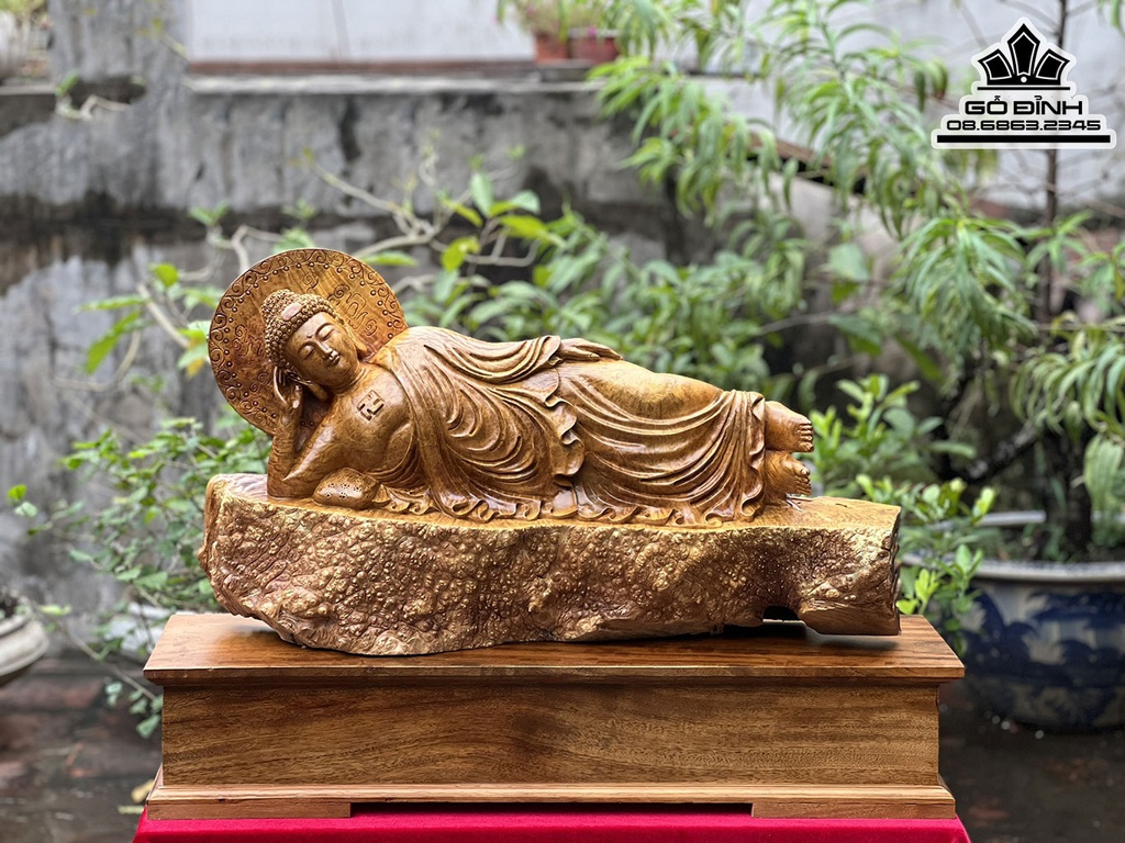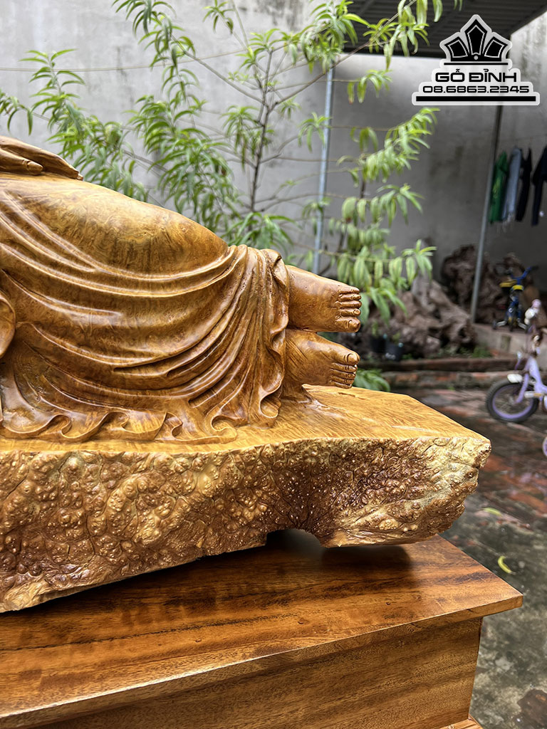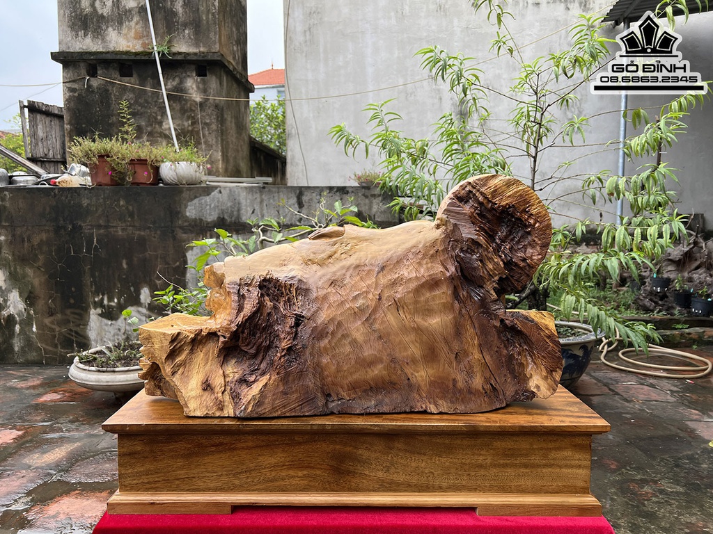 Tượng Phật A Di Đà Gỗ Nu Kháo Nguyên Khối Cao 39 Ngang 75 Sâu 21 Cả Kỷ 54 (cm)