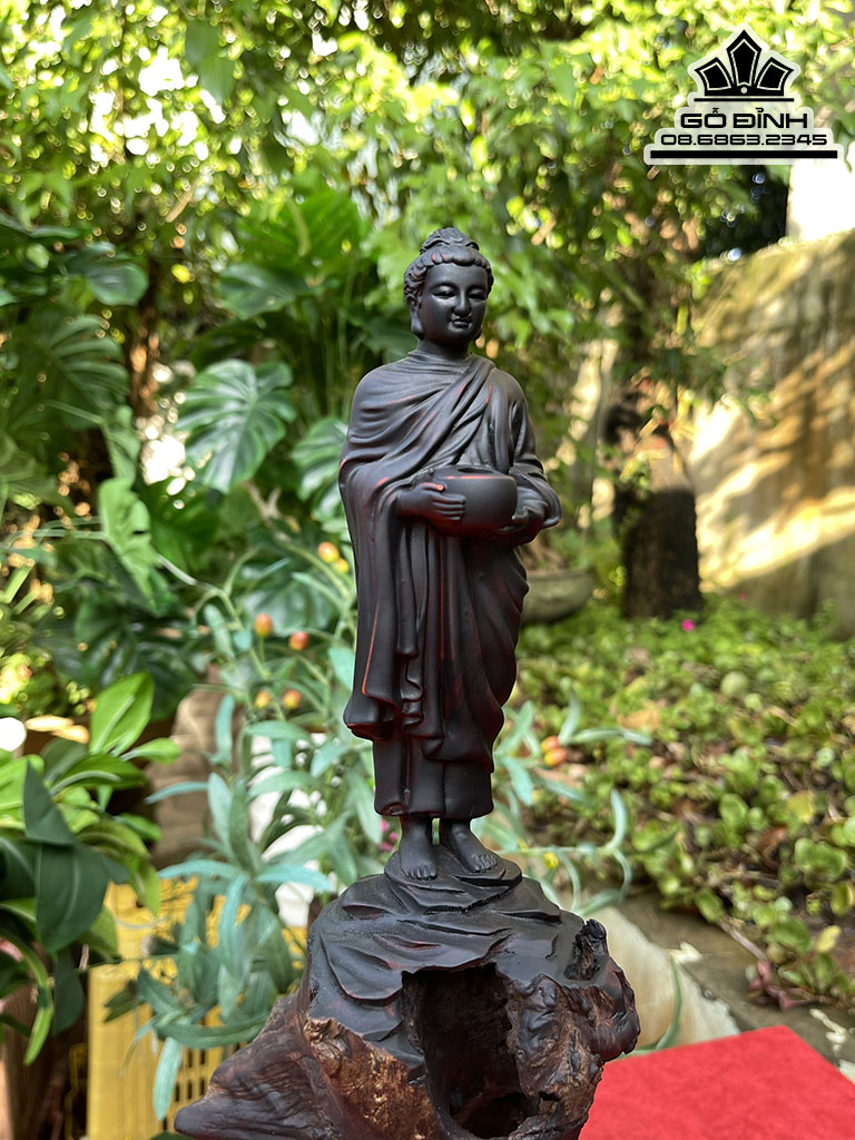 Tượng Phật A Di Đà Gỗ Trắc Cao 45 Ngang 21 Sâu 20 (cm)
