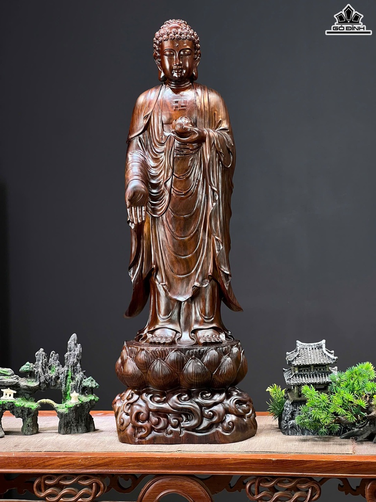 Tượng Phật A Di Đà Gỗ Trắc Cao 70 Ngang 24 Sâu 15 (cm)
