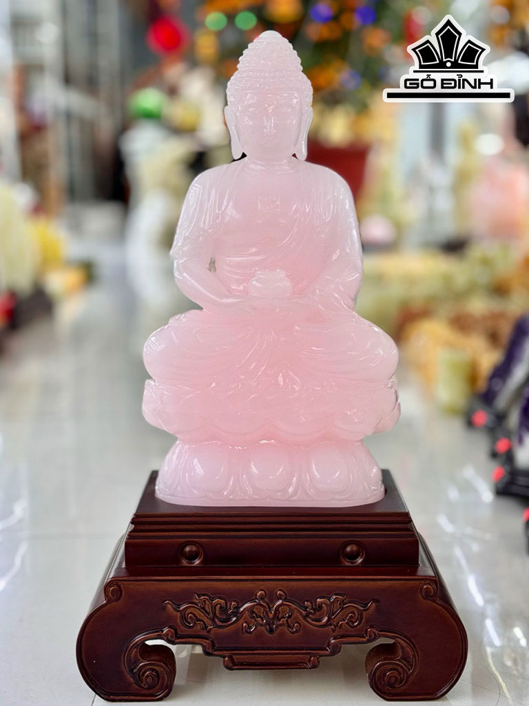 Tượng Phật Adida Đá Onyx Hồng Cao 51 Ngang 30 Riêng Đá Cao 37 Ngang 20 (cm)