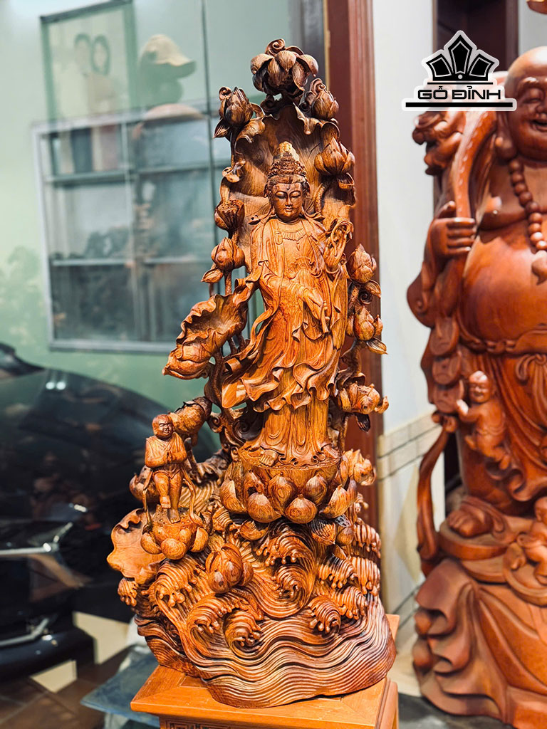 Tượng Phật Bà Quan Âm Gỗ Cẩm Cao 100 Ngang 48 Sâu 32 (cm)