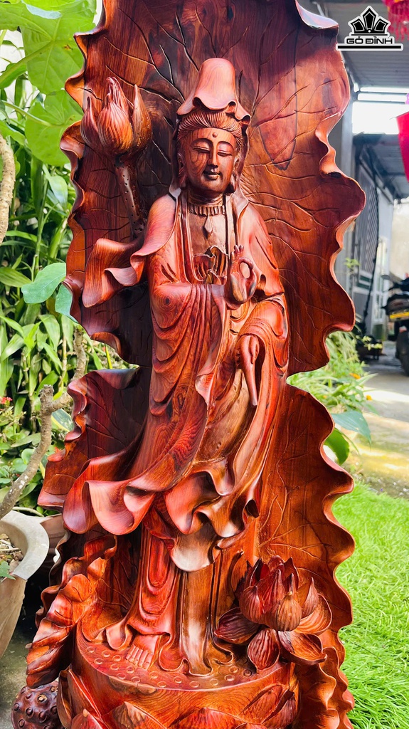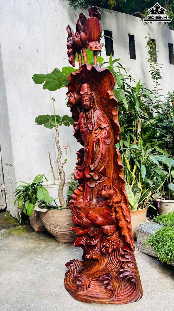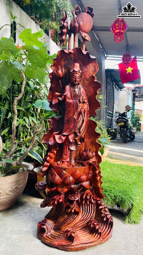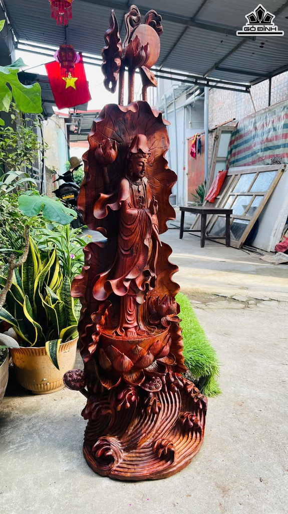 Tượng Phật Bà Quan Âm Gỗ Cẩm Cao 110 Ngang 37 Sâu 25 (cm)