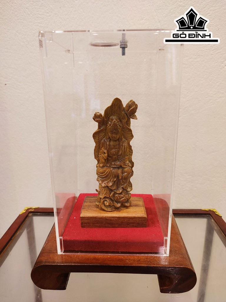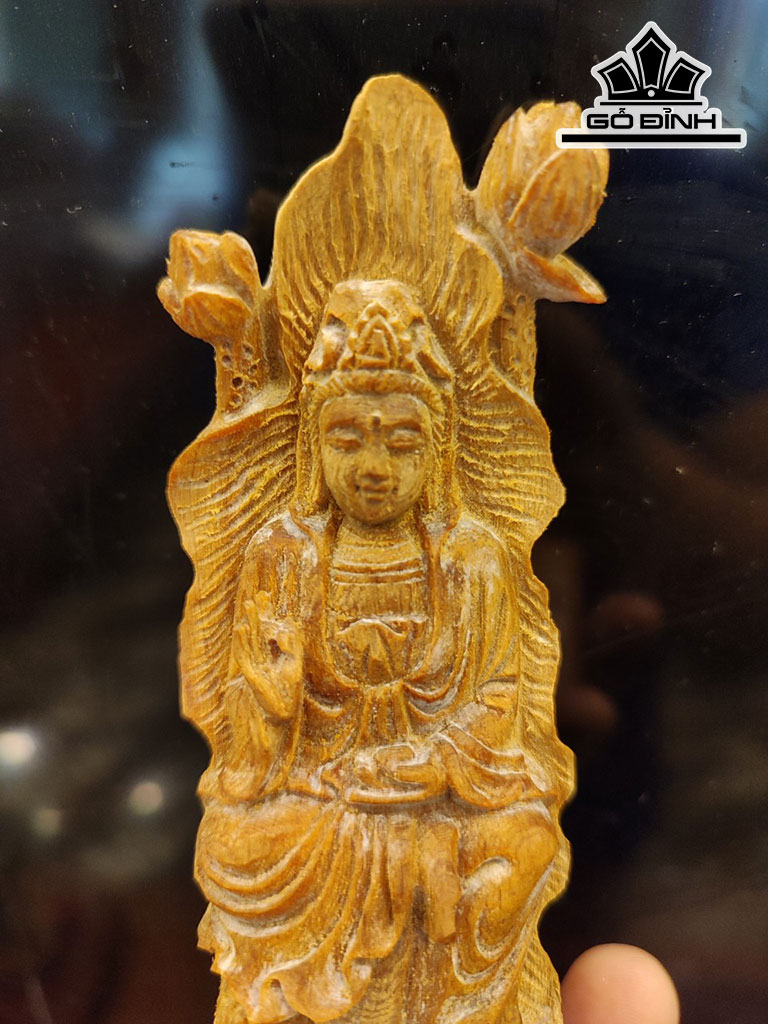 Tượng Phật Bà Quan Âm Gỗ Hoàng Đàn Cao 12 Ngang 4,5 Sâu 2,5 (cm)