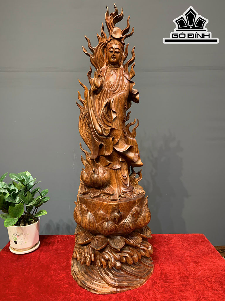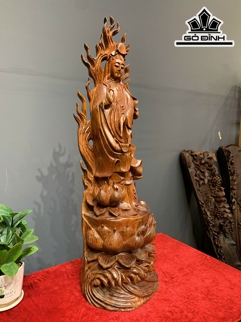 Tượng Phật Bà Quan Âm Gỗ Hương Cao 79 Ngang 25 Sâu 22 (cm)