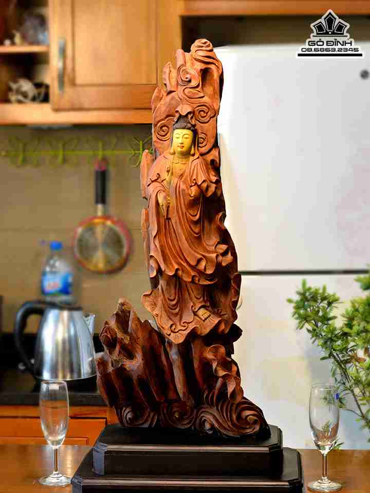 Tượng Phật Bà Quan Âm Gỗ Lũa Ngọc Am Cao 83 Ngang 33 Dày 20 (cm)