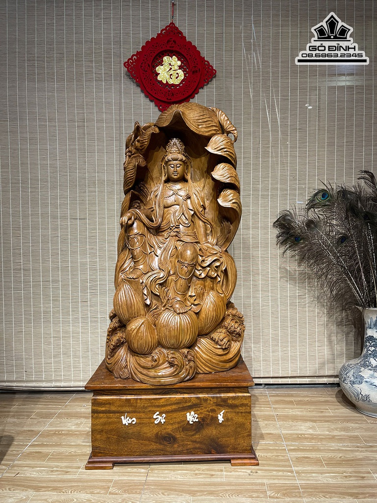 Tượng Phật Bà Quan Âm Gỗ Ngọc Am Cao 105 Ngang 56 Sâu 38 (cm)
