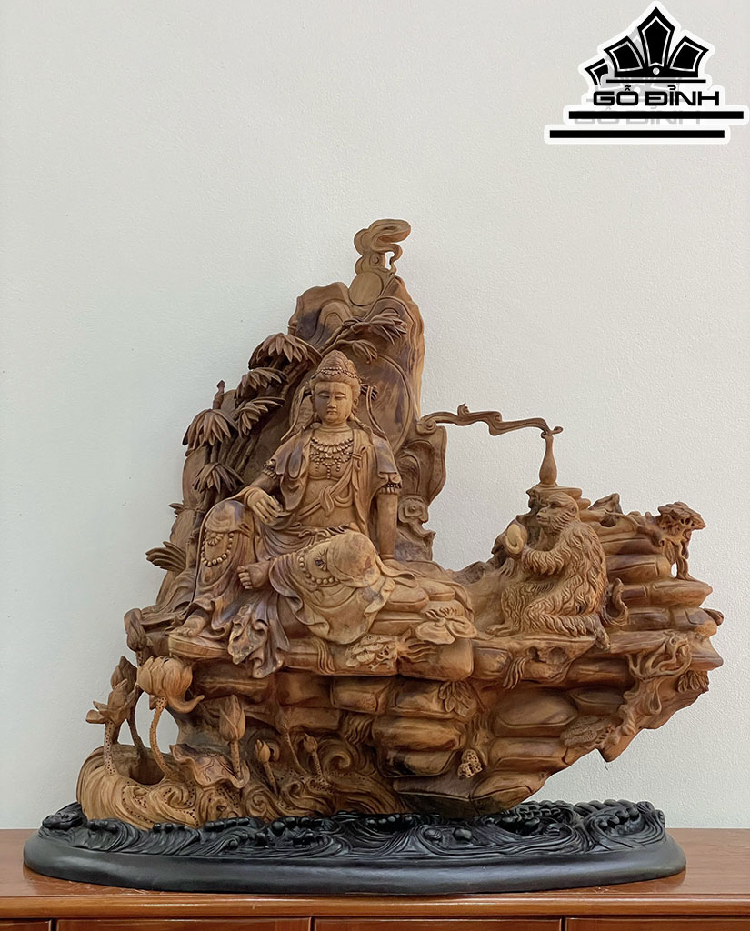 Tượng Phật Bà Quan Âm Gỗ Ngọc Am Cao 76 Ngang 80 Sâu 30 (cm)
