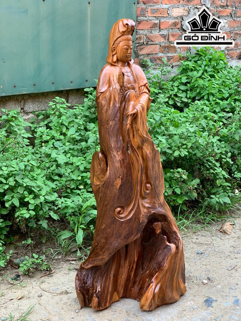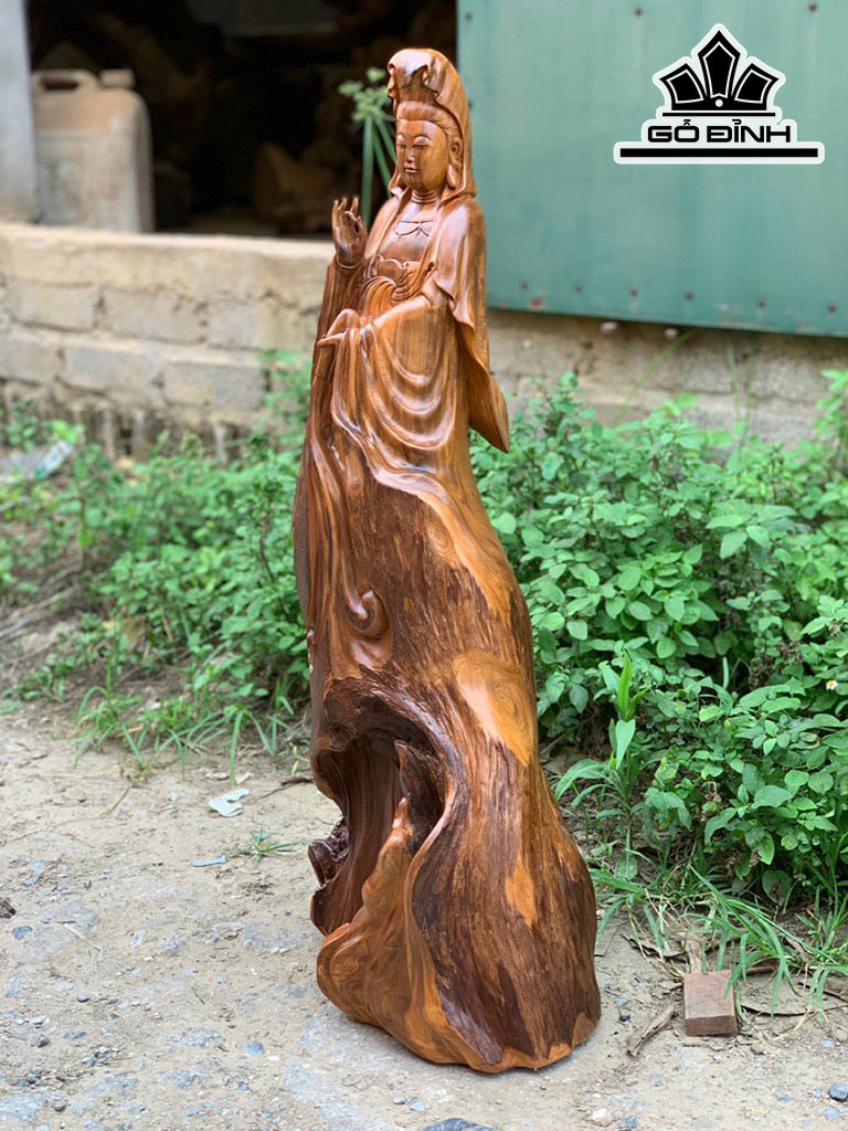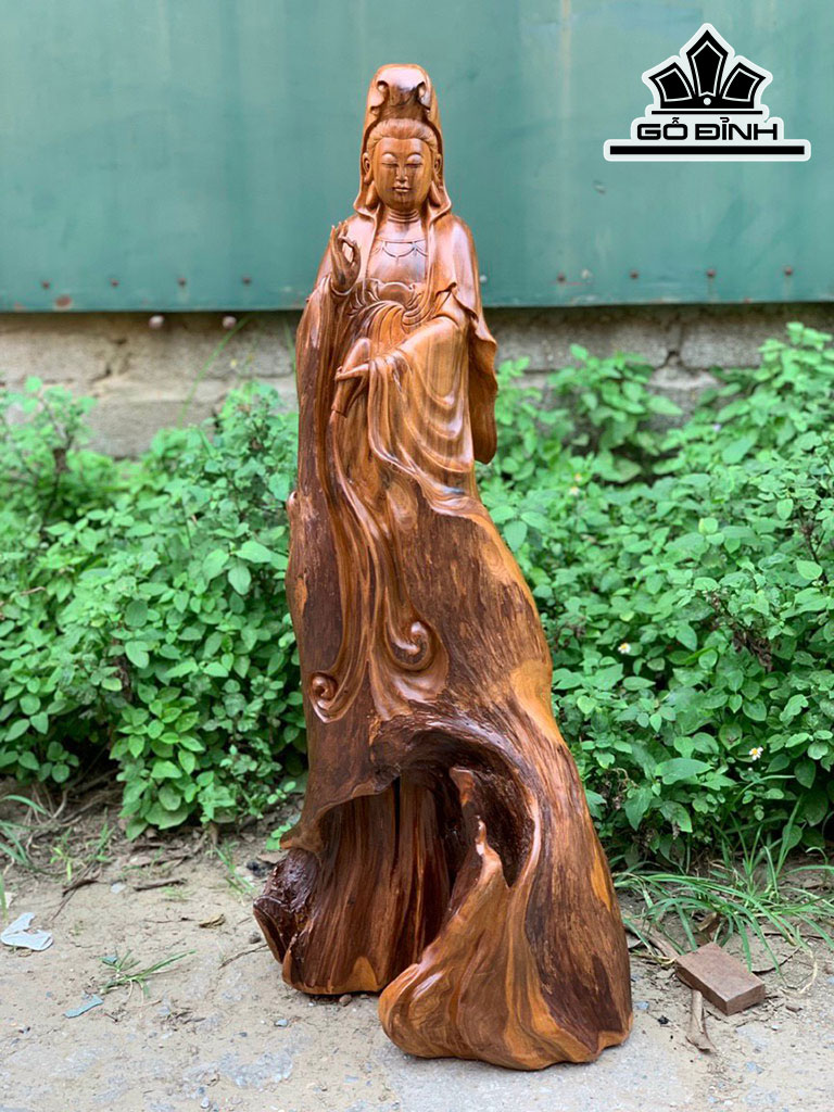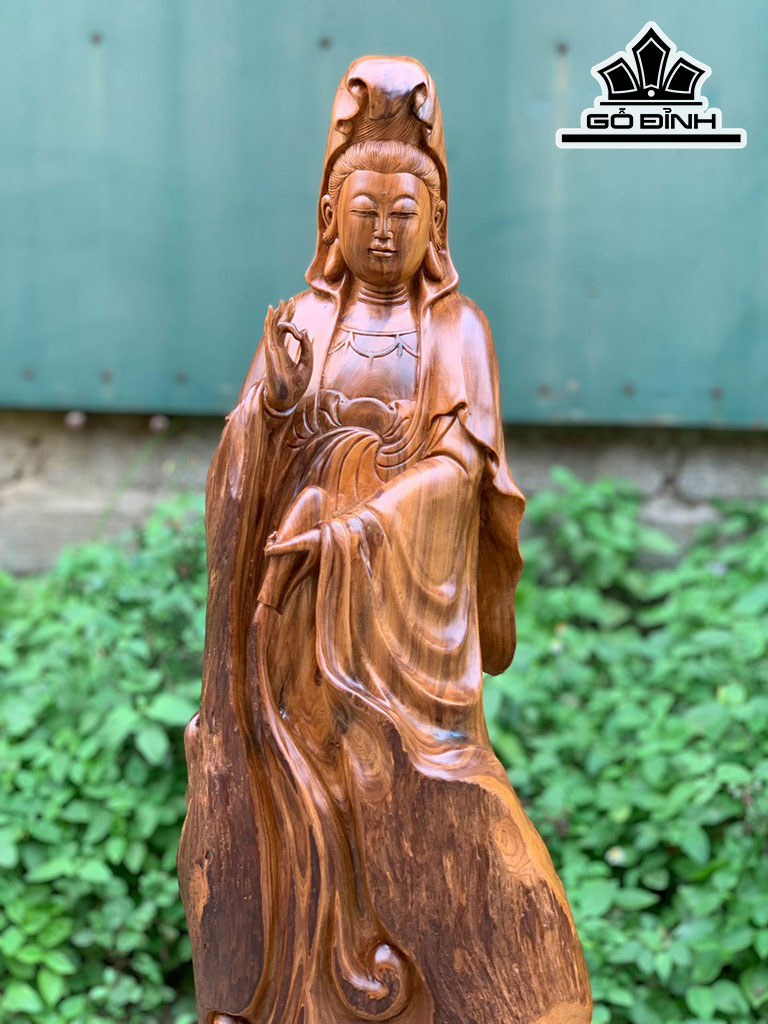 Tượng Phật Bà Quan Âm Gỗ Ngọc Am Cao 93 Ngang 40 Sâu 26 (cm)