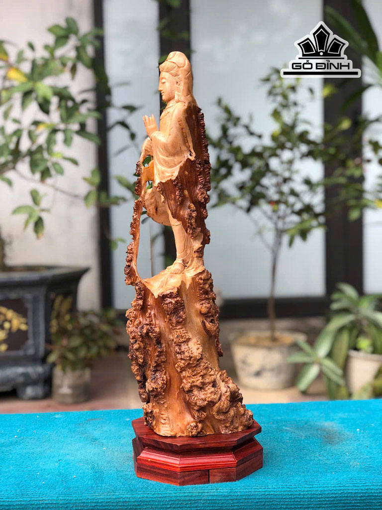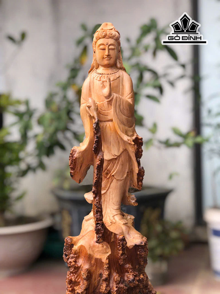 Tượng Phật Bà Quan Âm Gỗ Nu Dổi Cao 61 Ngang 18 Sâu 18 (cm)