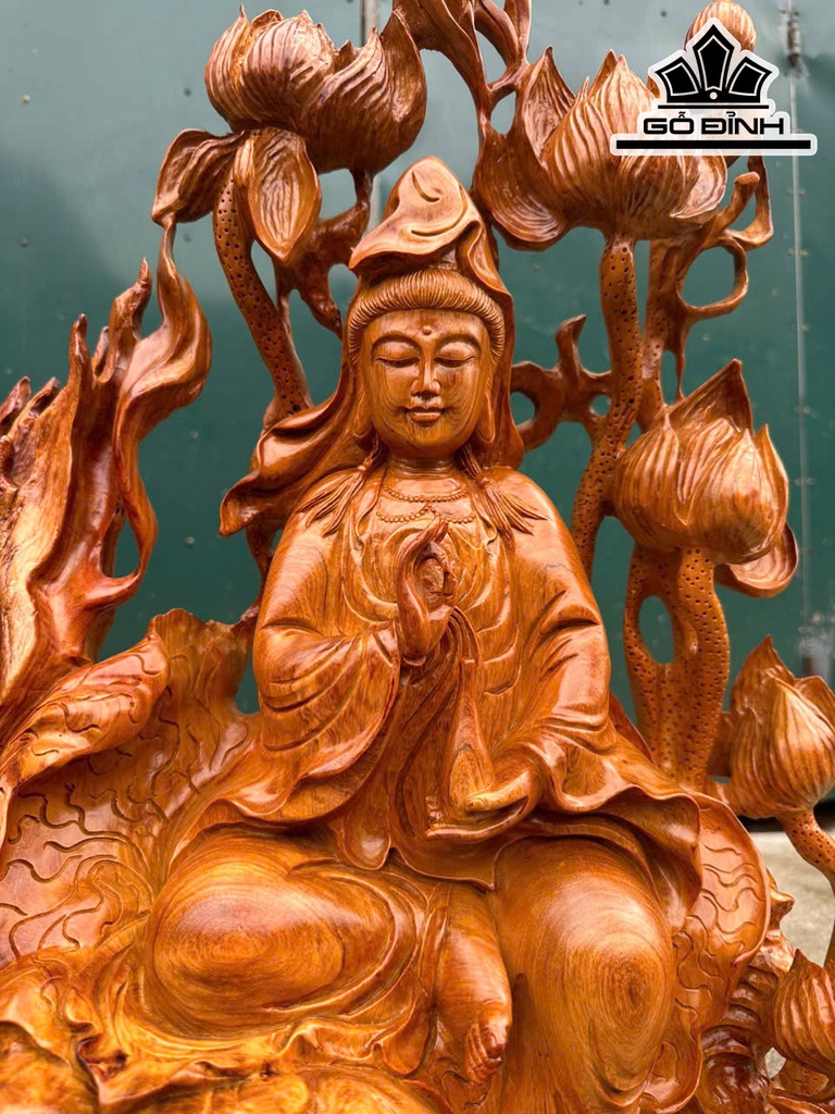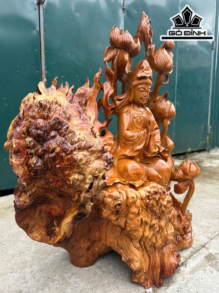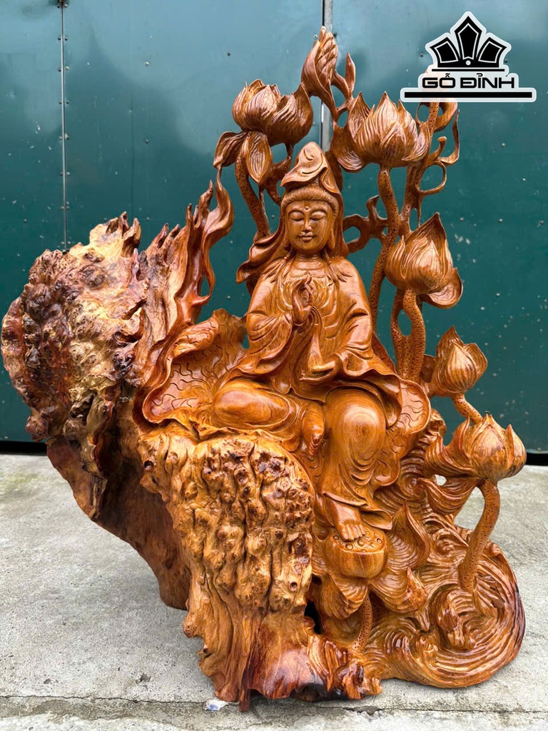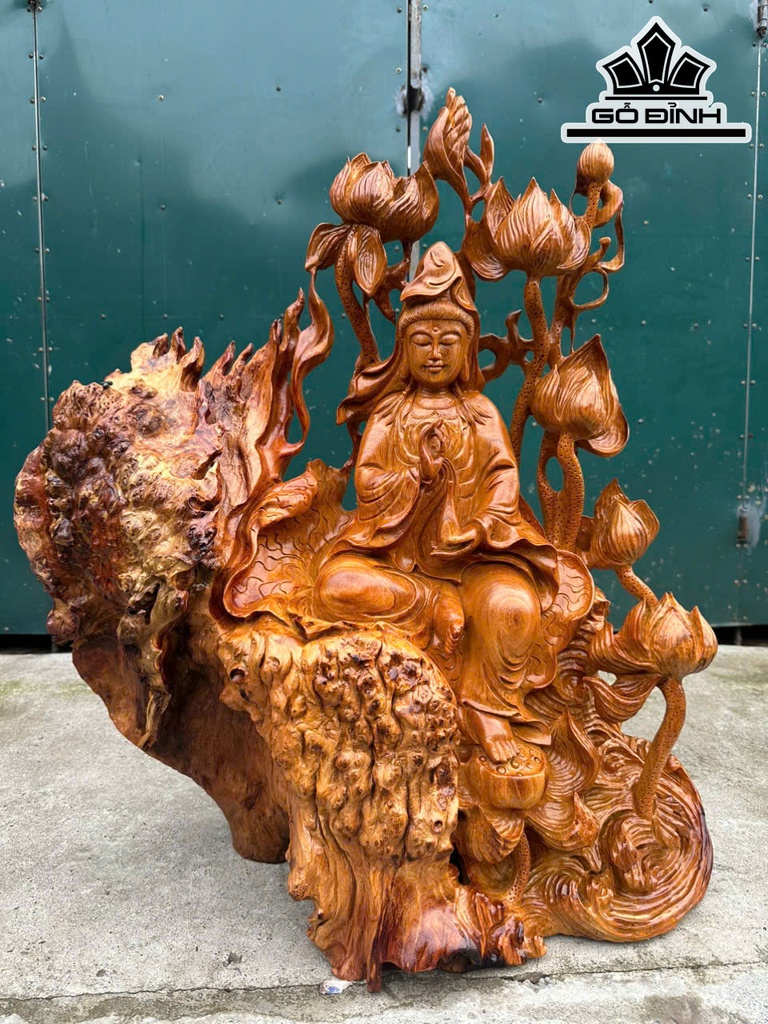Tượng Phật Bà Quan Âm Gỗ Nu Hương Cao 72 Ngang 60 Sâu 30 (cm)