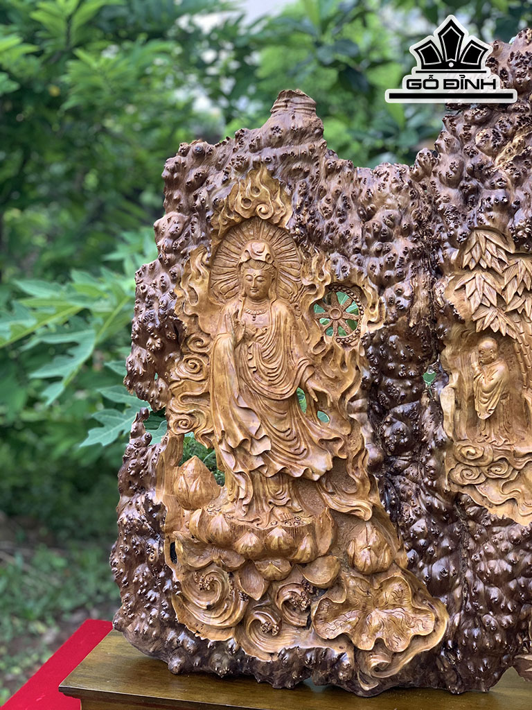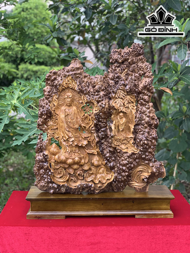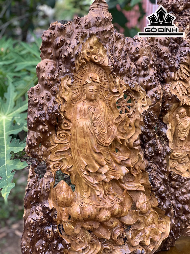 Tượng Phật Bà Quan Âm Gỗ Nu Kháo Cao 71 Ngang 65 Sâu 10 (cm)Loại Gỗ