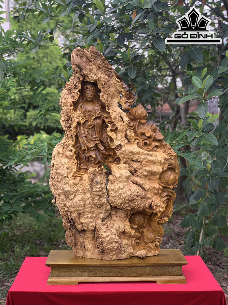 Tượng Phật Bà Quan Âm Gỗ Nu Kháo Cao 98 Ngang 63 Sâu 16 (cm)