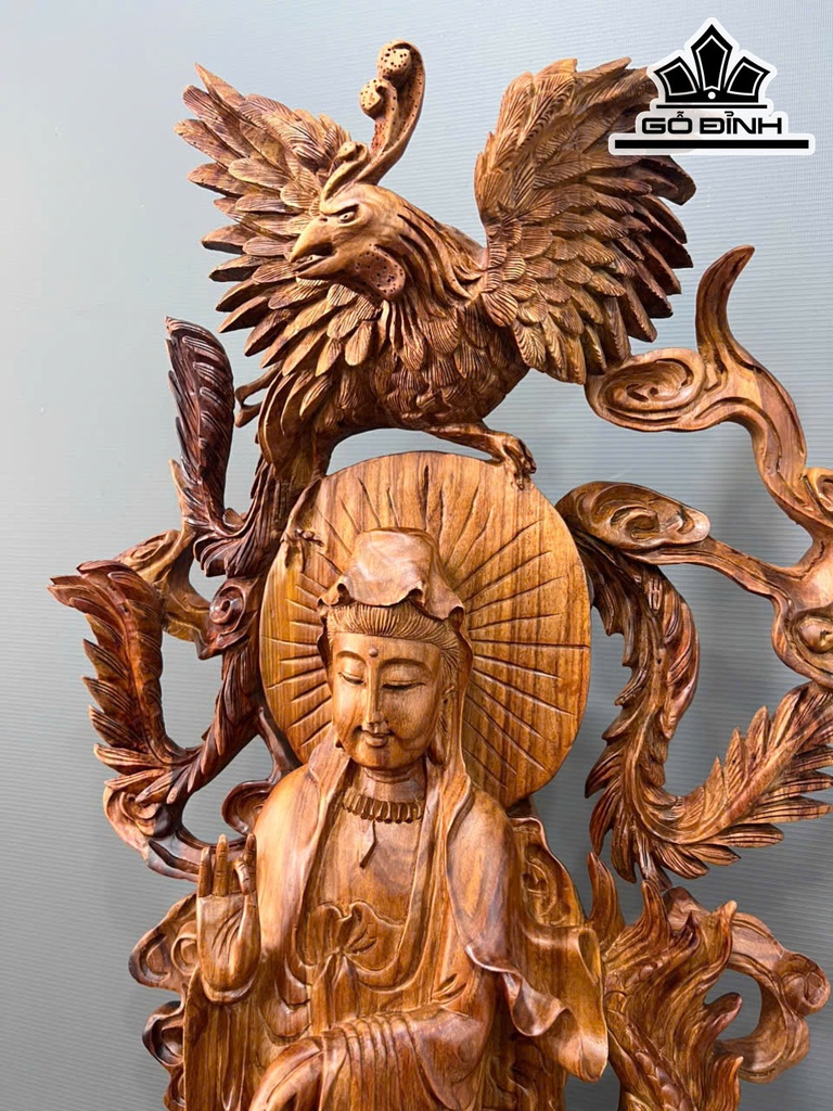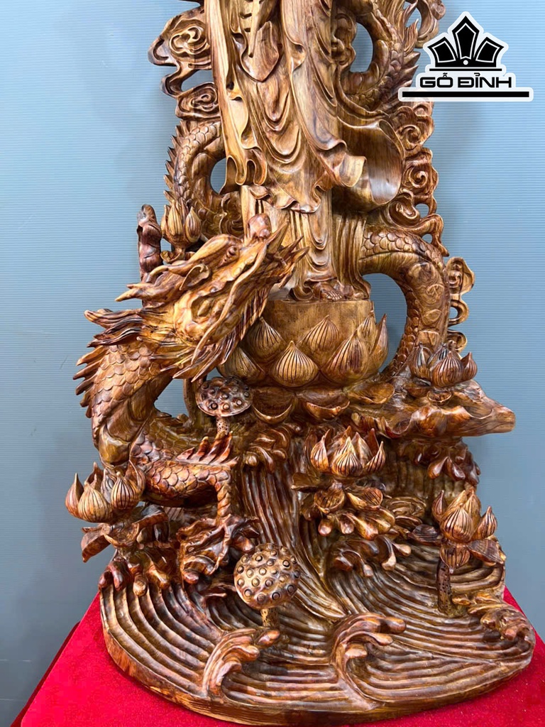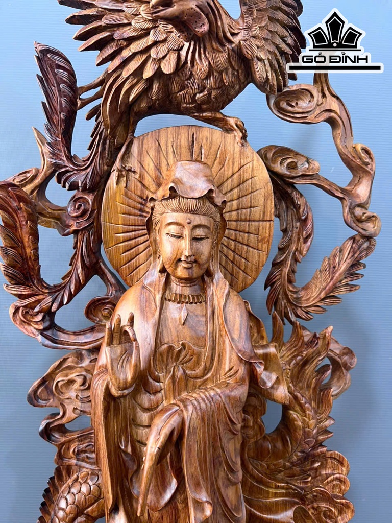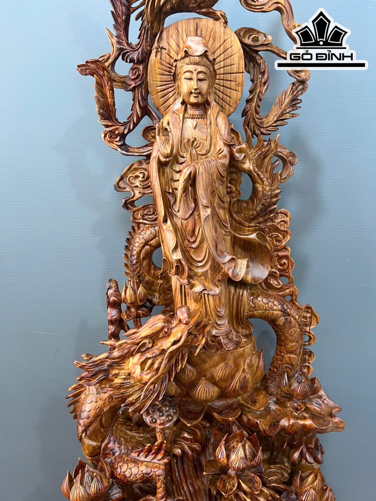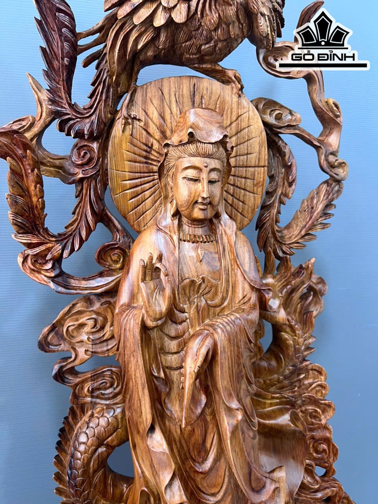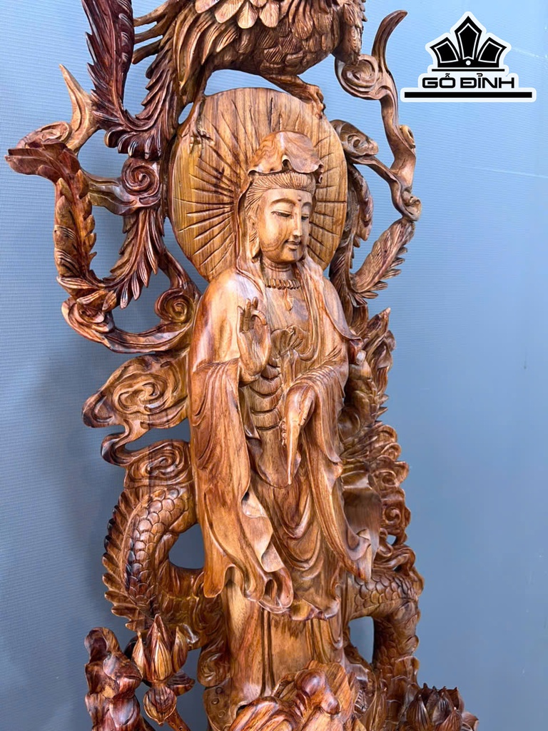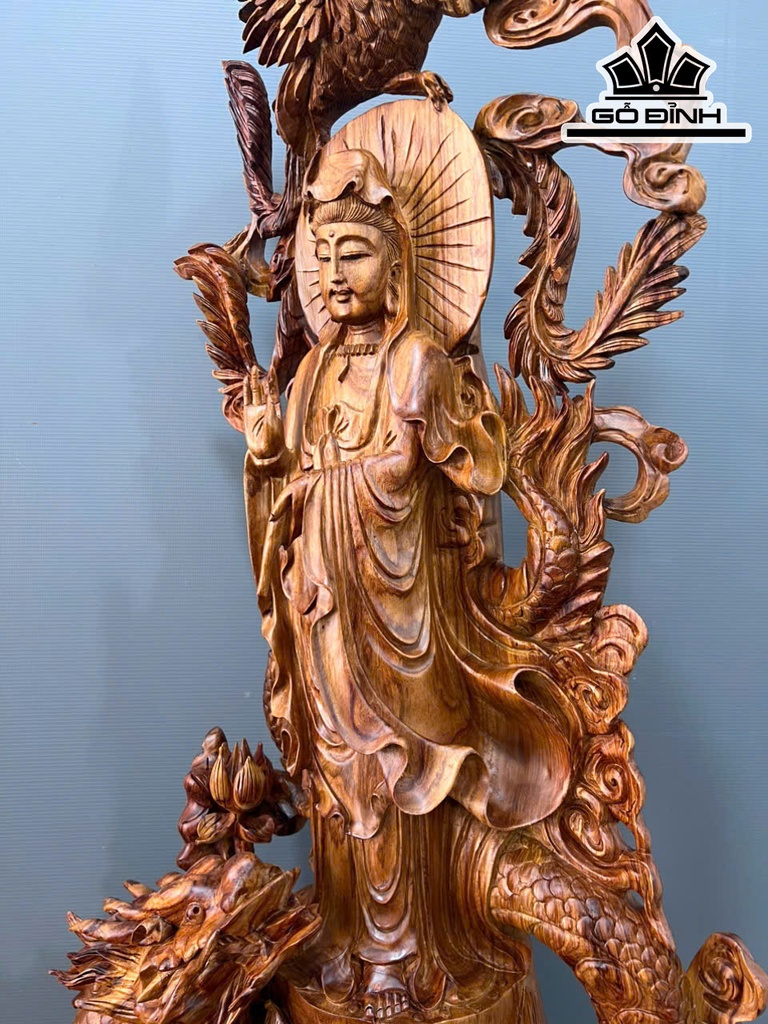 Tượng Phật Bà Quan Âm Gỗ Sưa Cao 132 Ngang 50 Sâu 32 (cm)
