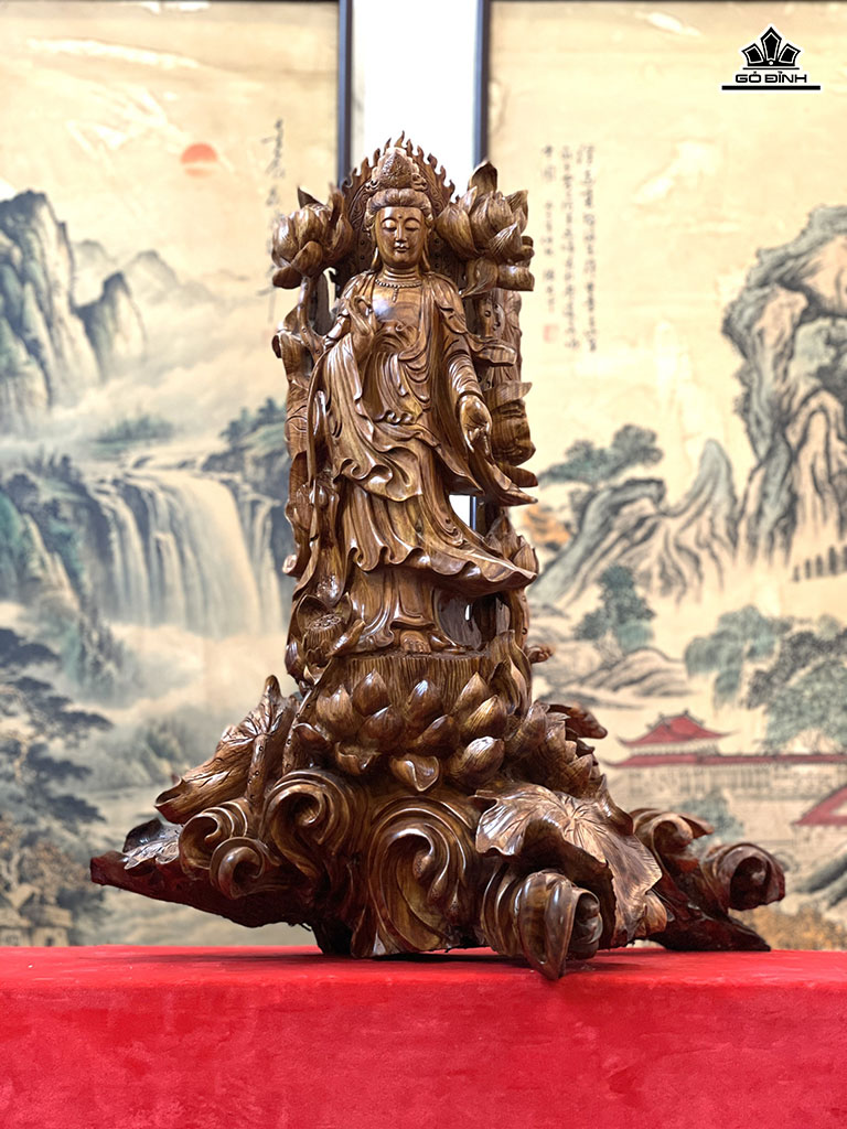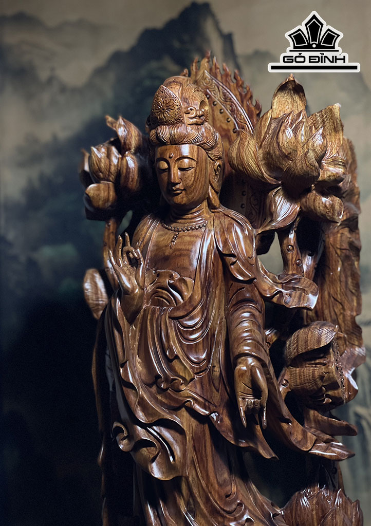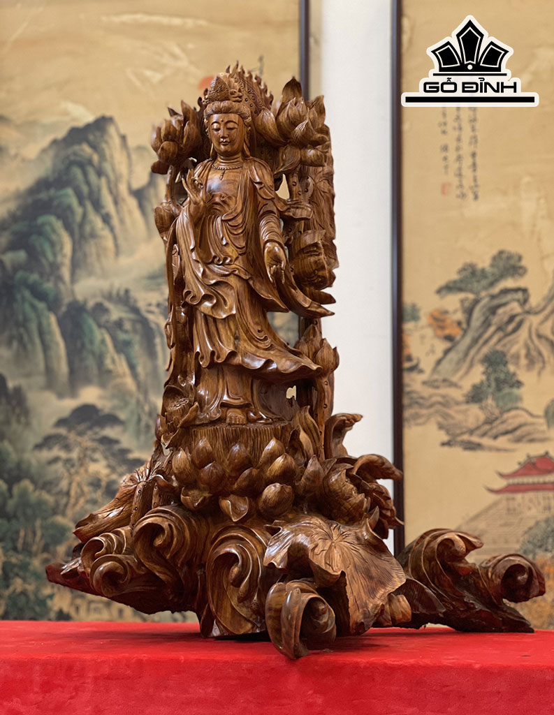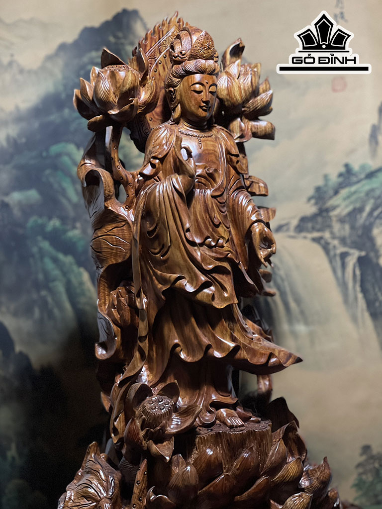 Tượng Phật Bà Quan Âm Gỗ Sưa Cao 72 Ngang 70 Sâu 46 (cm)