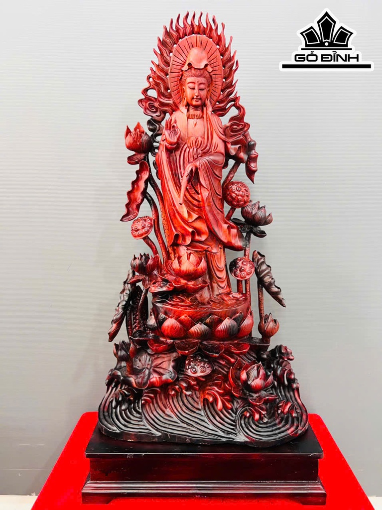 Tượng Phật Bà Quan Âm Gỗ Trắc Cao 101 Ngang 48 Sâu 23 (cm)