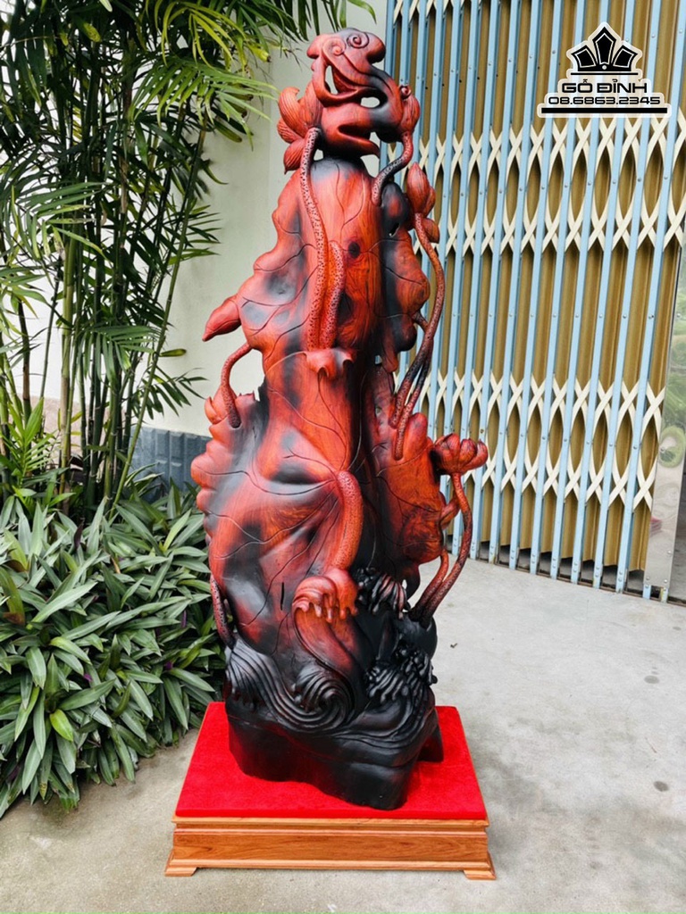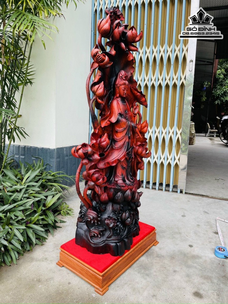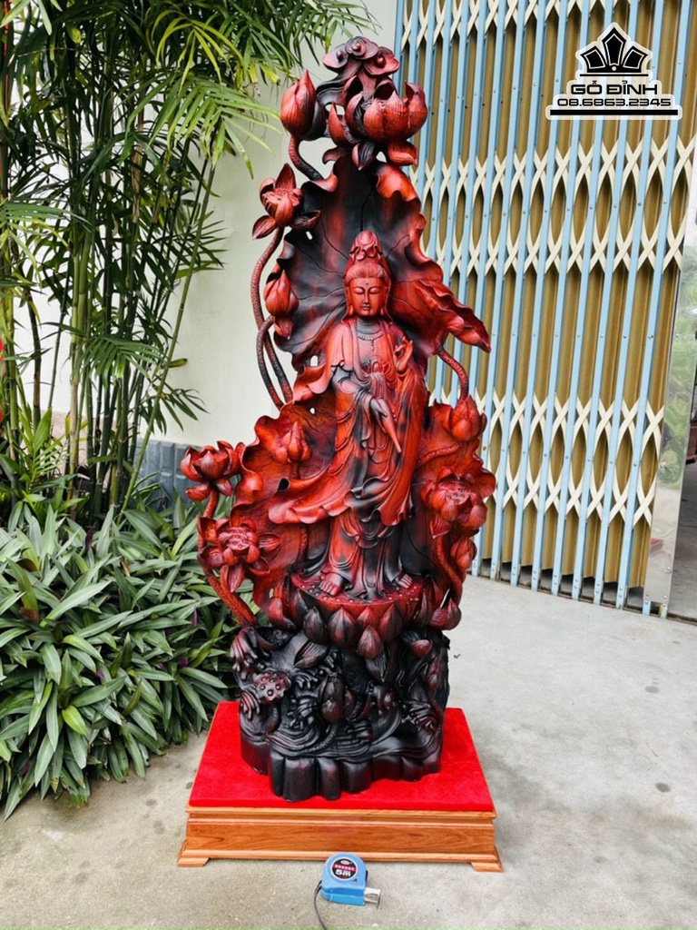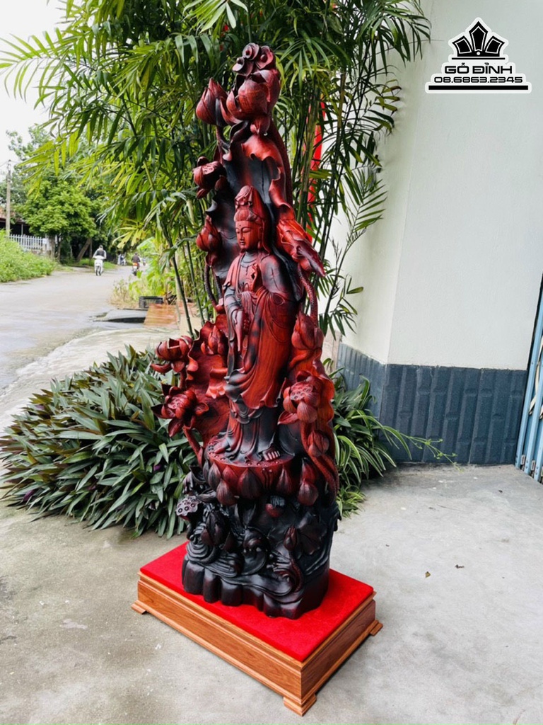 Tượng Phật Bà Quan Âm Gỗ Trắc Cao 118 Ngang 46 Sâu 33 Cả Kỷ 128 (cm)