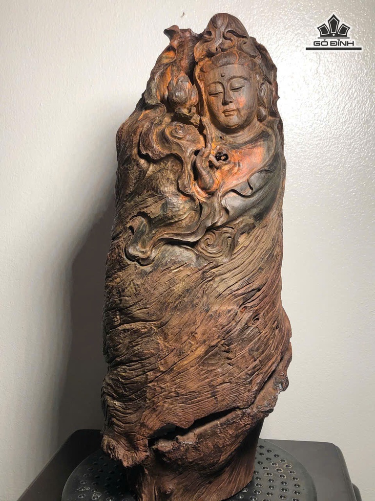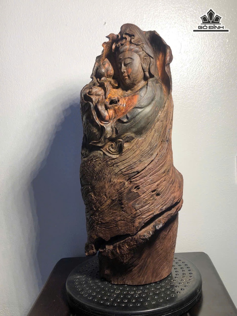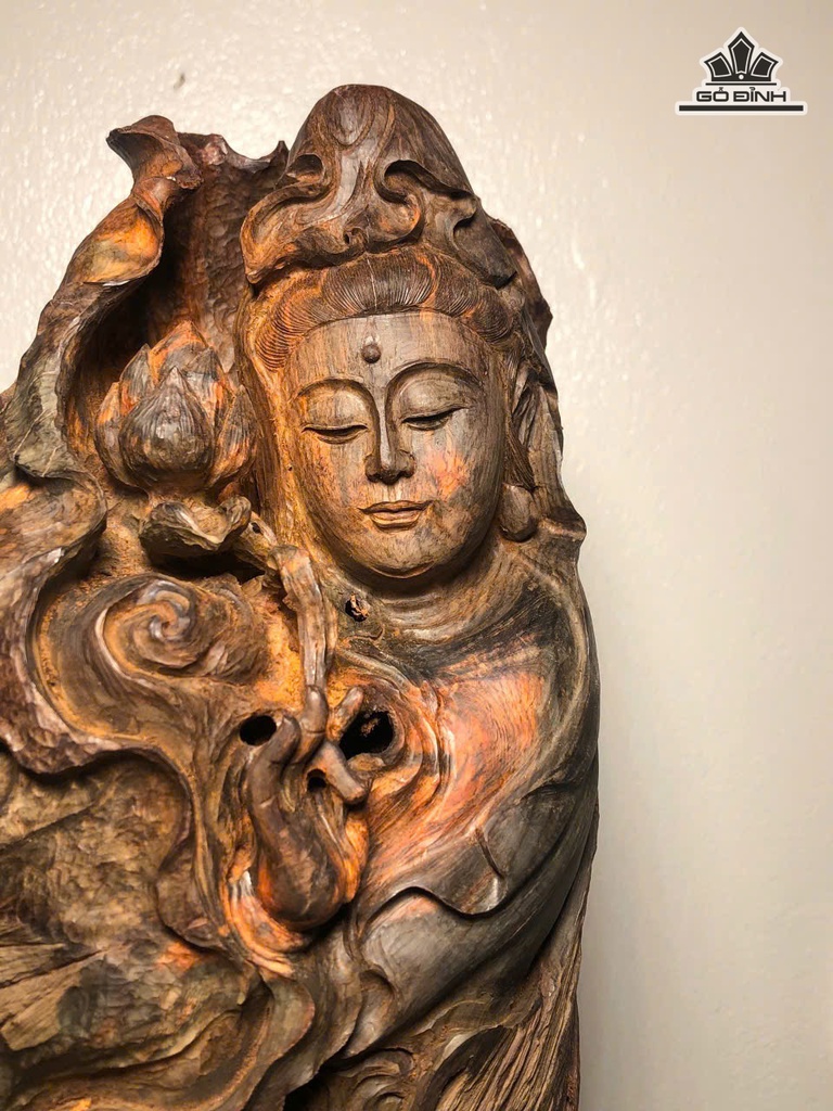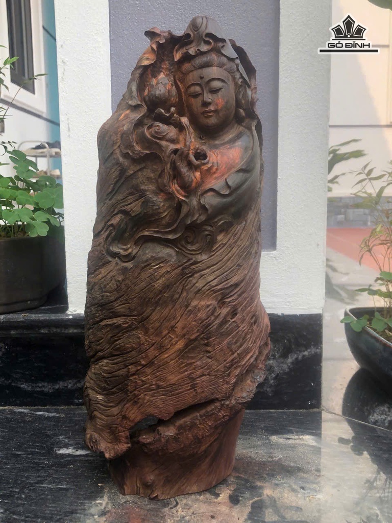 Tượng Phật Bà Quan Âm Gỗ Trắc Cao 45 Ngang 20 Sâu 14 (cm)