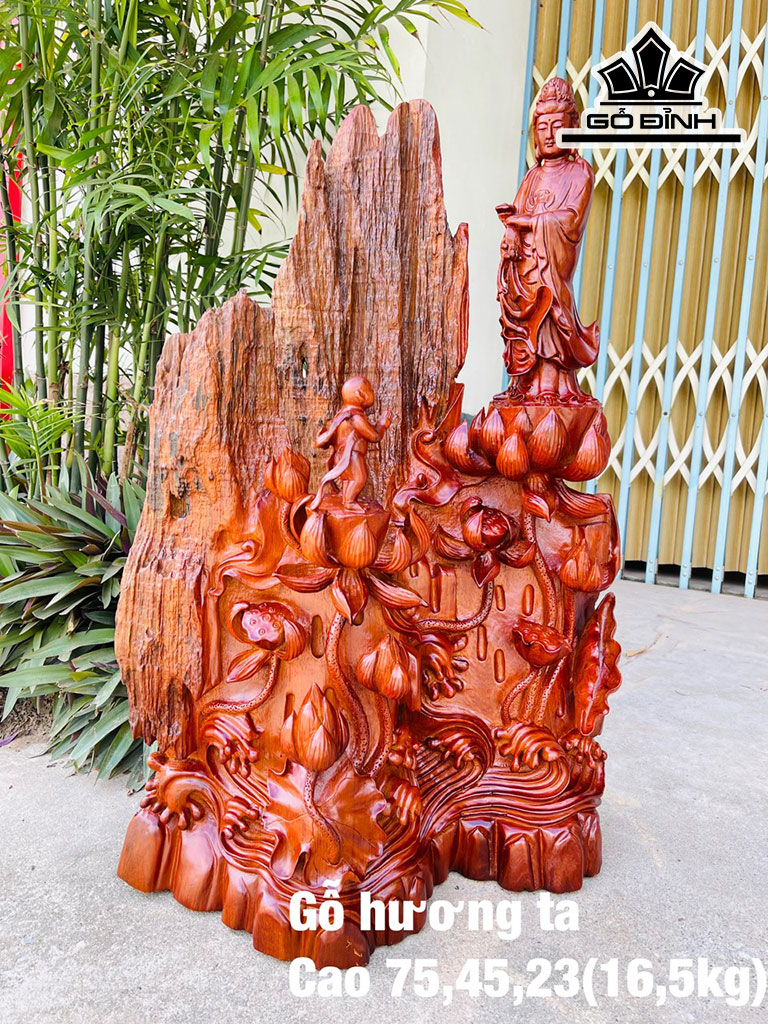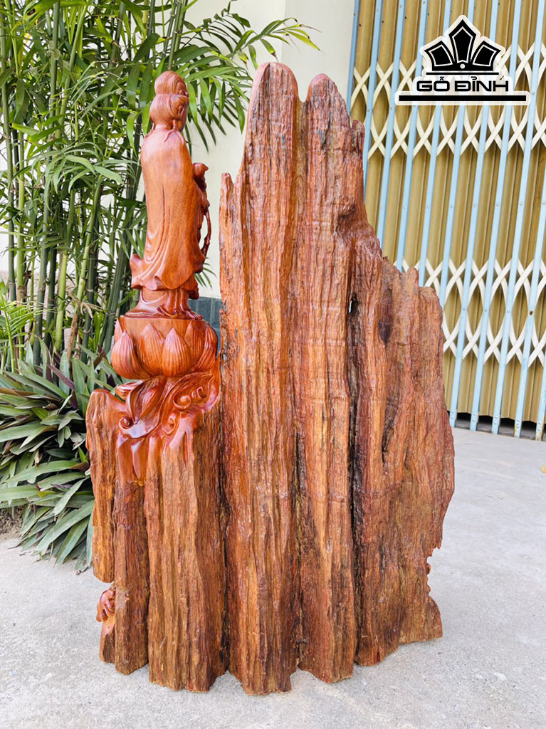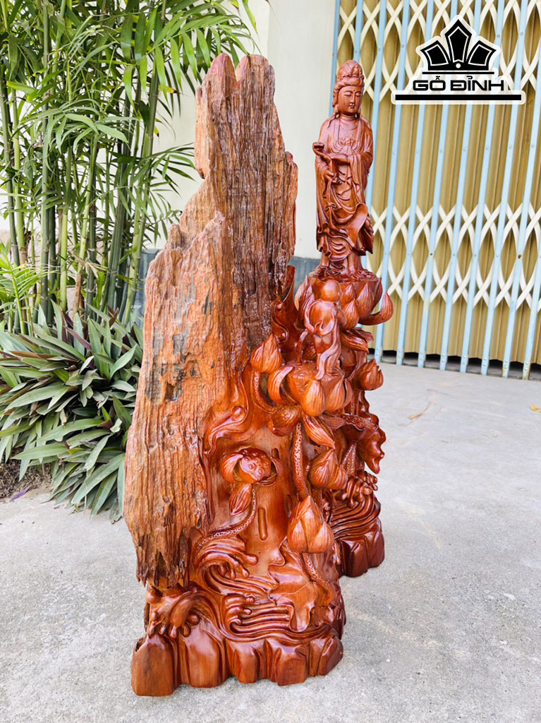 Tượng Phật Bà Quan Âm Gỗ Trắc Cao 75 Ngang 45 Sâu 23 (cm)