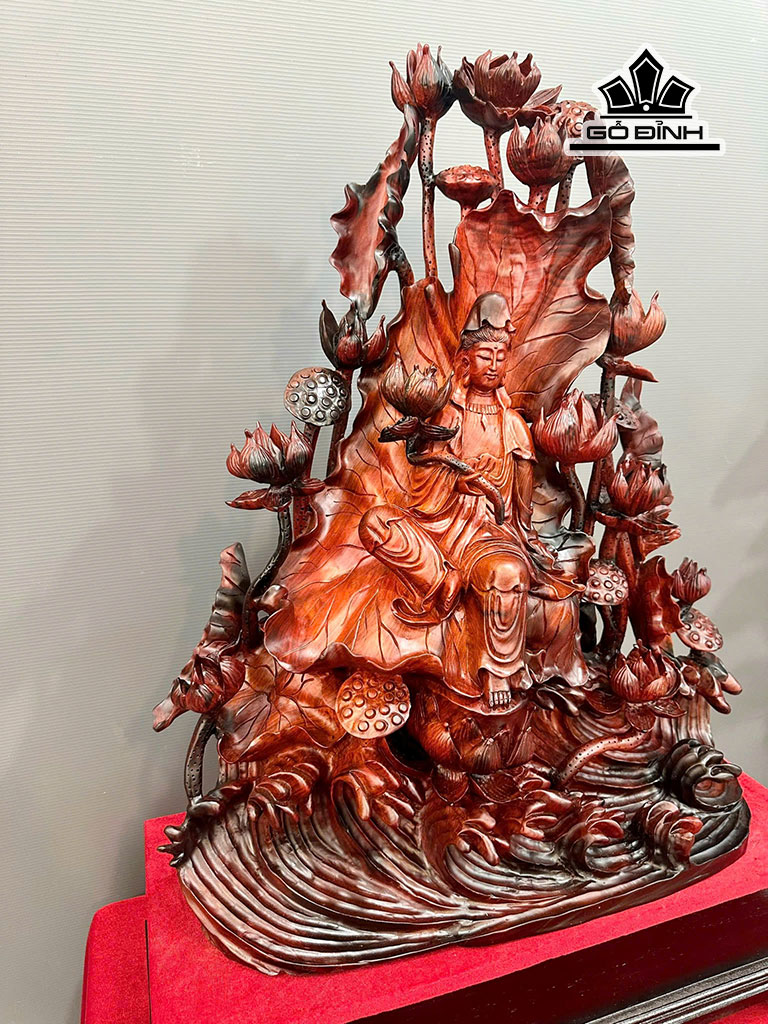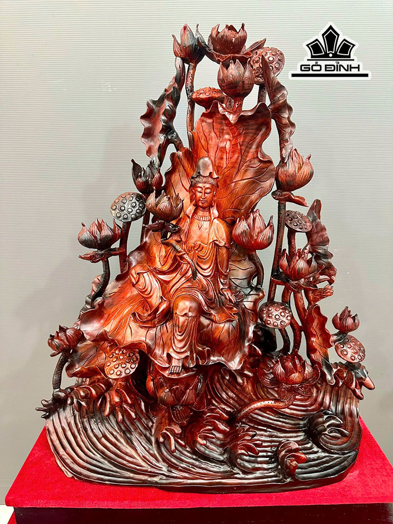 Tượng Phật Bà Quan Âm Gỗ Trắc Cao 80 Ngang 58 Sâu 26 (cm)