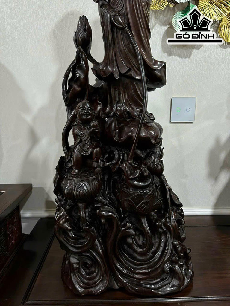 Tượng Phật Bà Quan Âm Gỗ Trắc Cao 90 Ngang 35 Sâu 33 (cm)