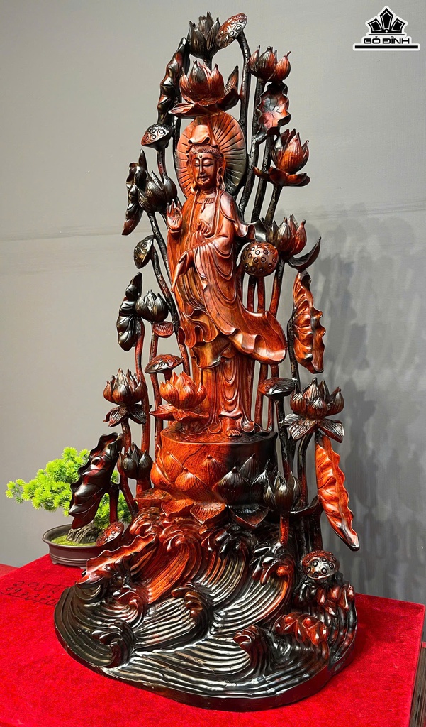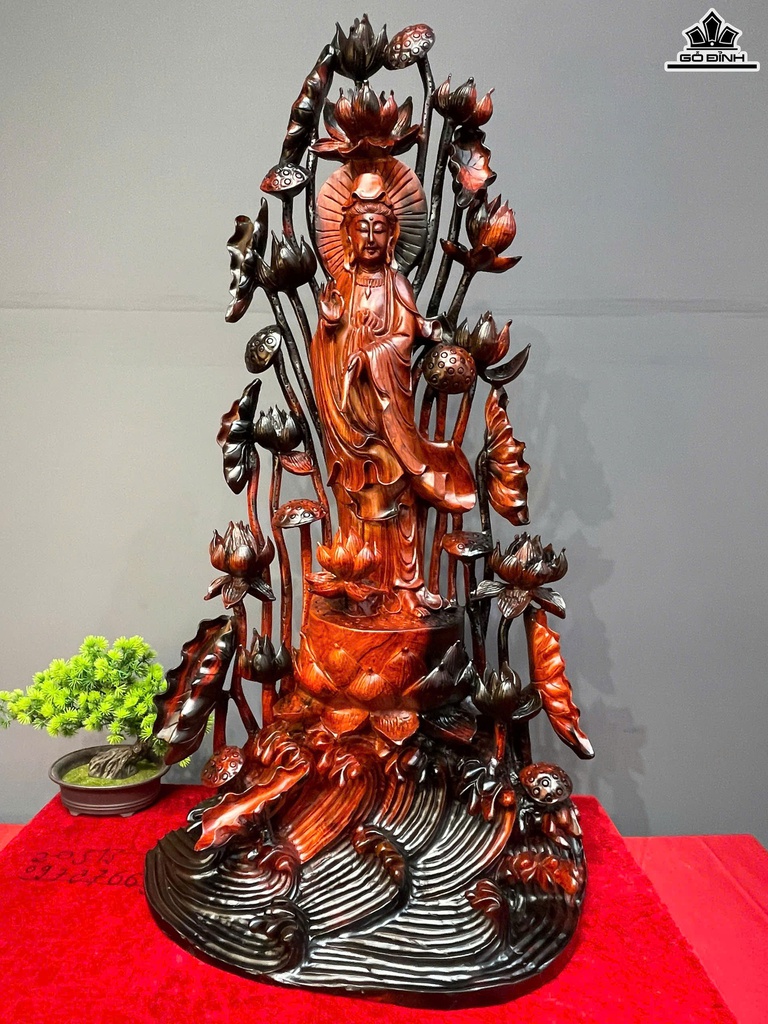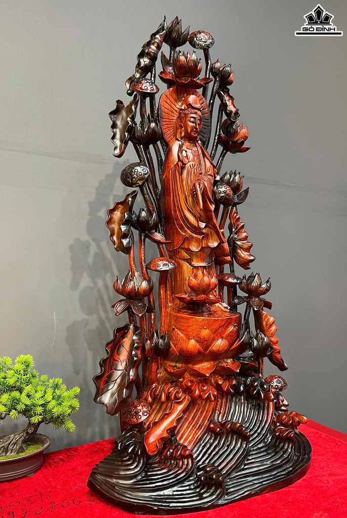 Tượng Phật Bà Quan Âm Gỗ Trắc Cao 95 Ngang 46 Sâu 22 (cm)
