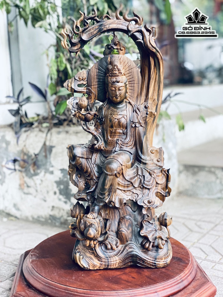 Tượng Phật Bà Quan Âm Ngồi Gỗ Mun Hoa Cao 58 Ngang 26 Sâu 18 (cm)