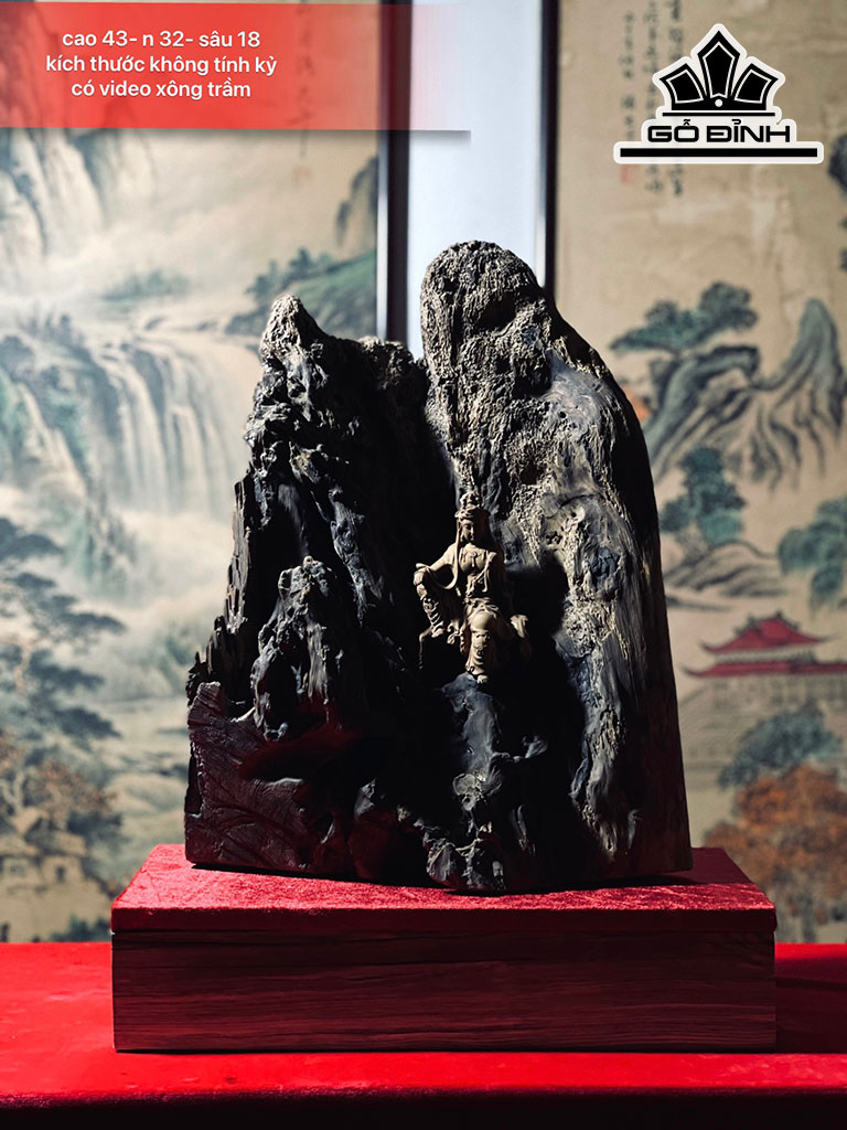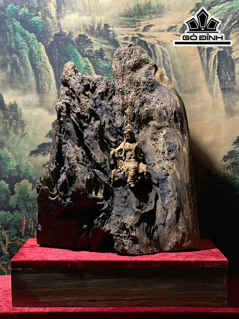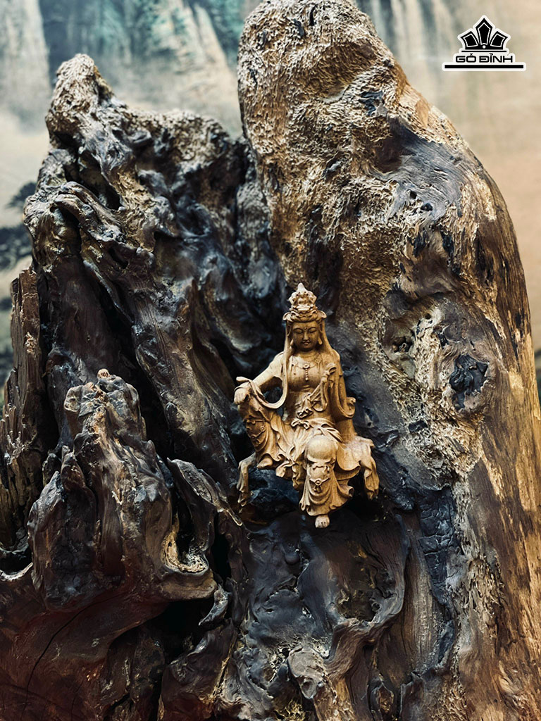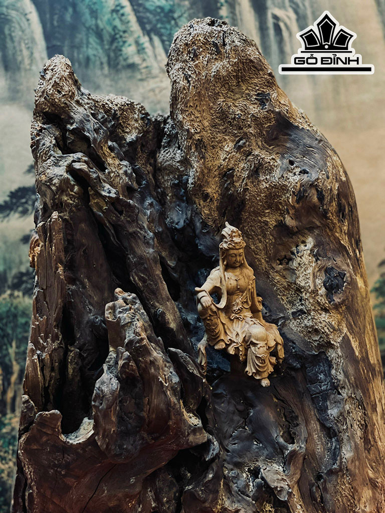 Tượng Phật Bà Quan Âm Tự Tại Gỗ Bách Xanh Cao 43 Ngang 32 Sâu 18 (cm)