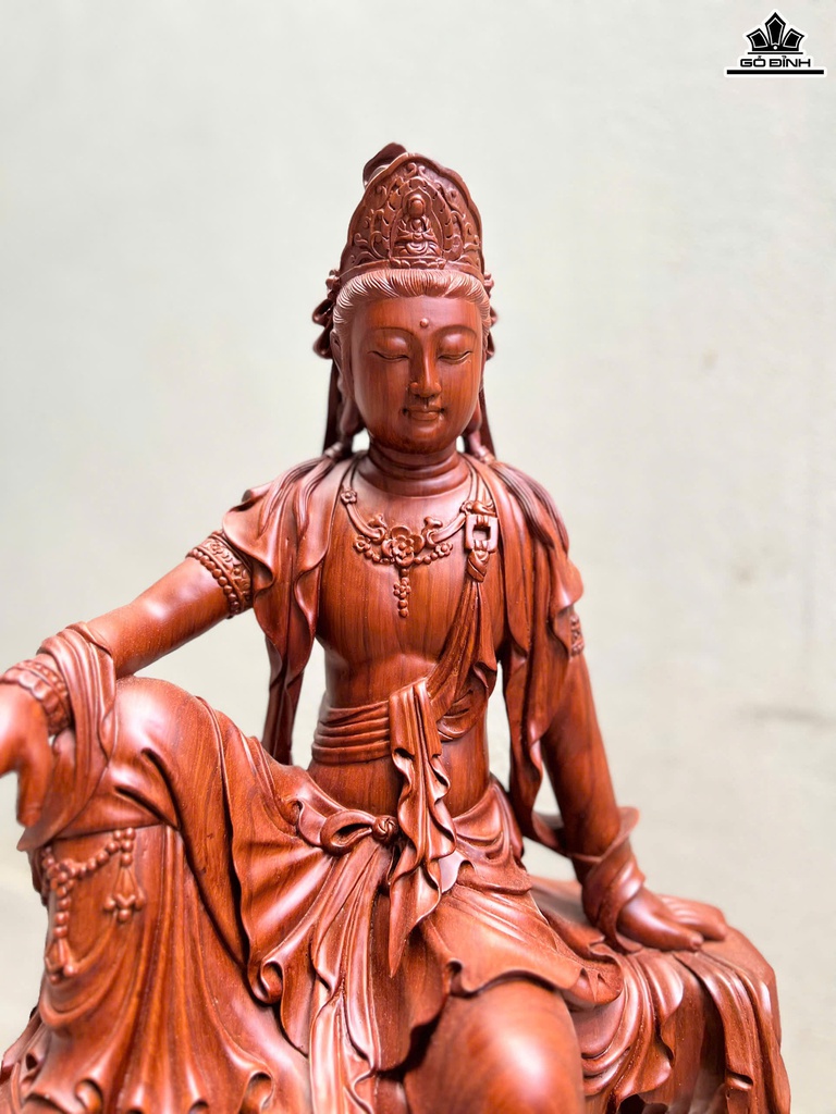 Tượng Phật Bà Quan Âm Tự Tại Gỗ Hương Cao 60 Ngang 38 Sâu 32 (cm)